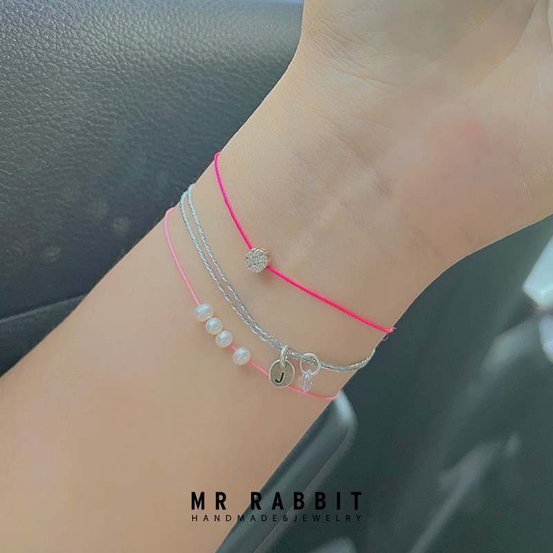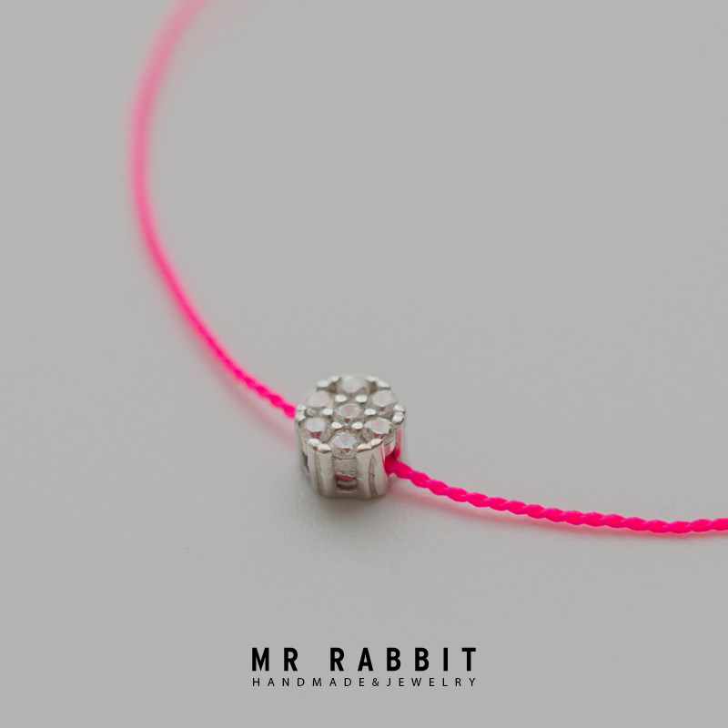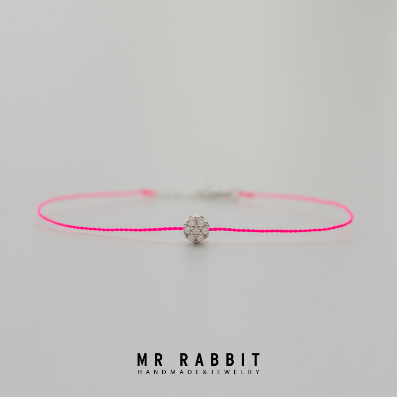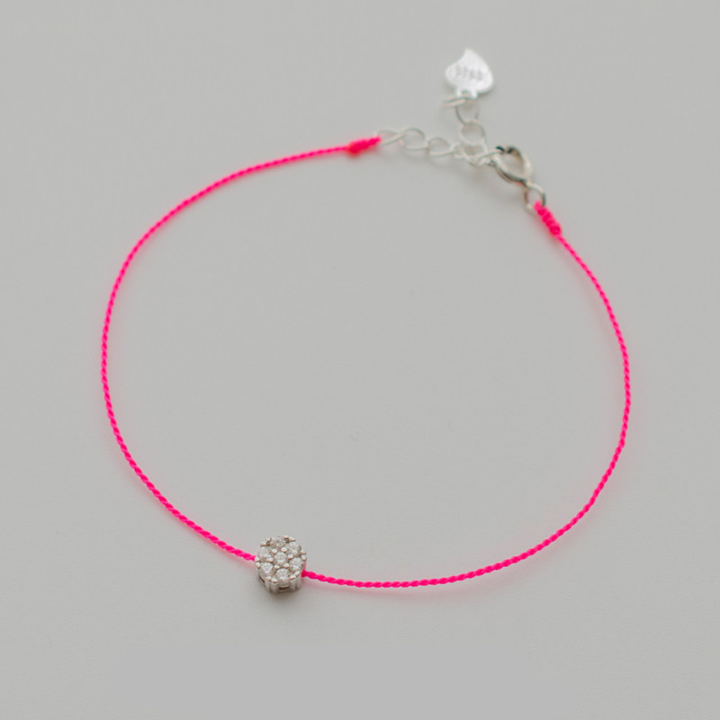 📚 张碧晨同款荧光粉超细手绳高级感锆石轻奢桃花手链简约纯银不掉色