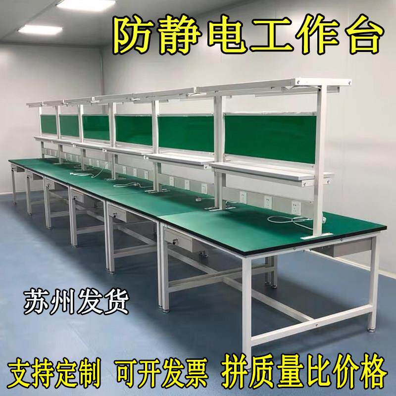 📚 防静电工作台车间带灯流水线学校实验室无尘检验操作台手机维修桌