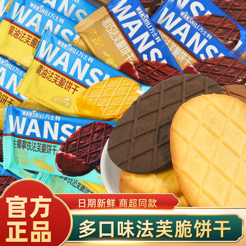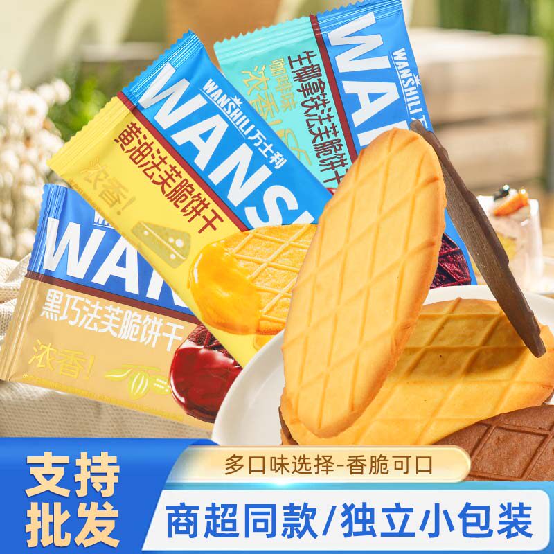 📚 万士 利法芙脆饼干黑巧黄油薄脆饼整箱早餐煎饼独立小包装零食品