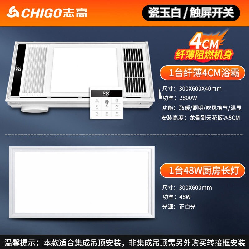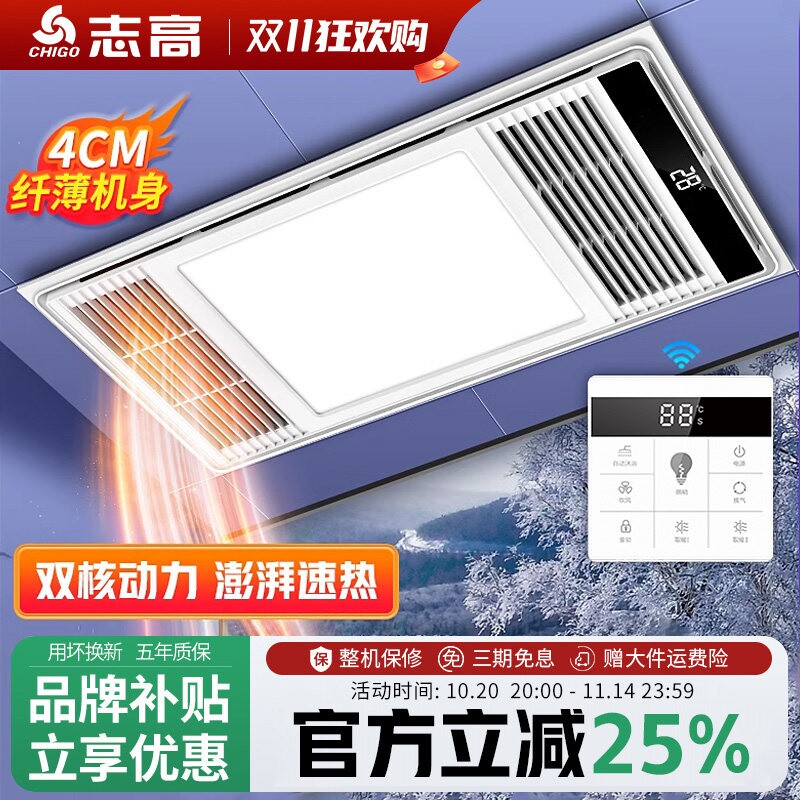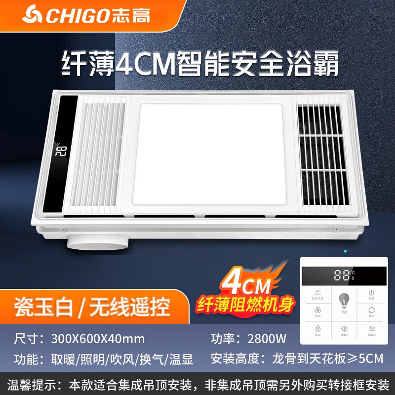 📚 志高浴霸灯集成吊顶卫生间取暖照室暖风机明排气扇一体超薄4CM浴