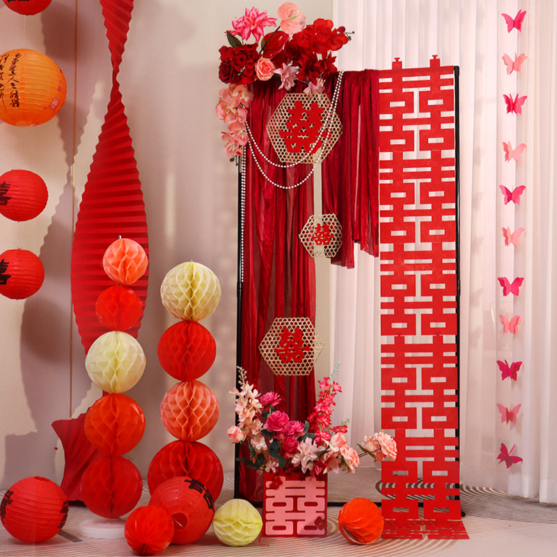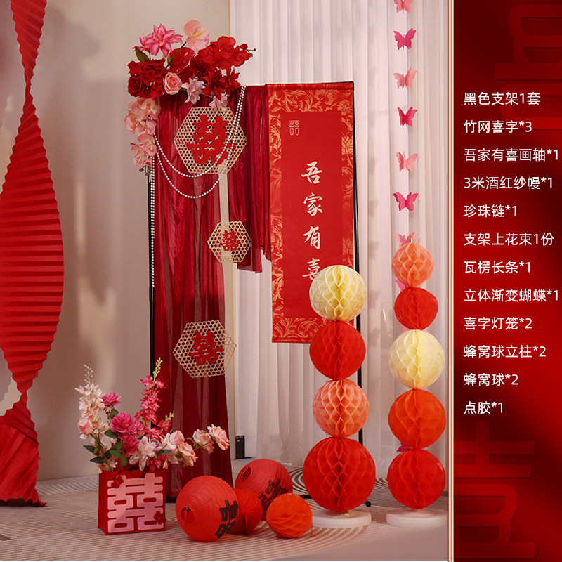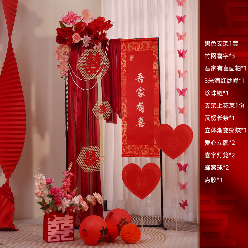 📚 婚房布置套装吾家有喜卷轴客厅装饰婚礼挂饰结婚订婚喜字落地摆件
