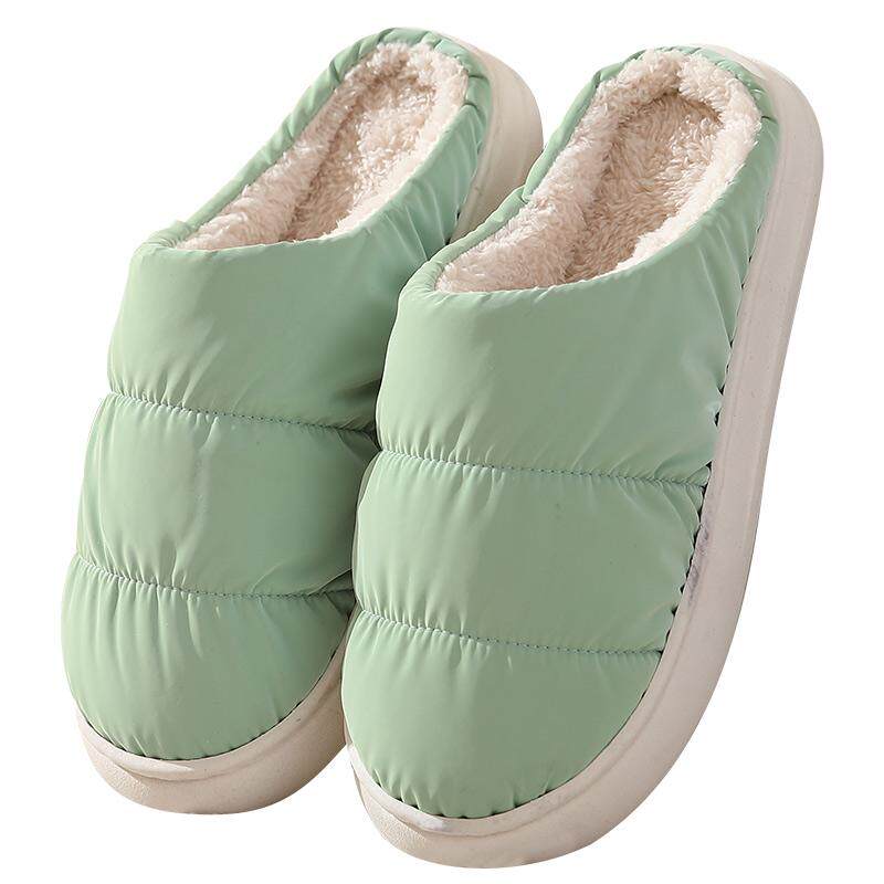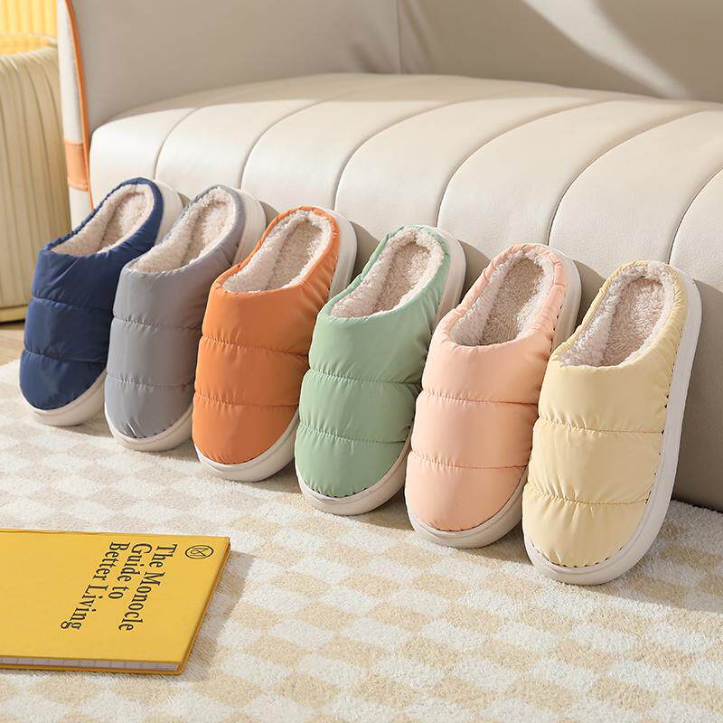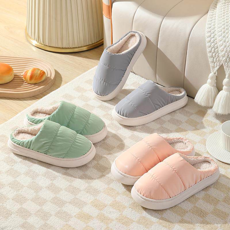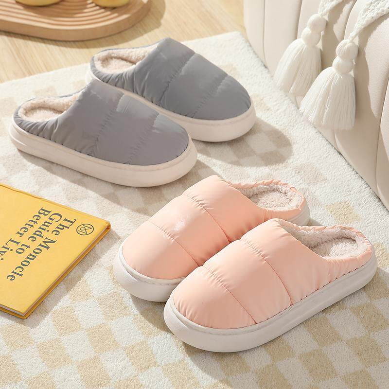📚 踩屎感加厚底棉拖鞋女冬季居家用包脚保暖面包防水羽绒布棉鞋外穿