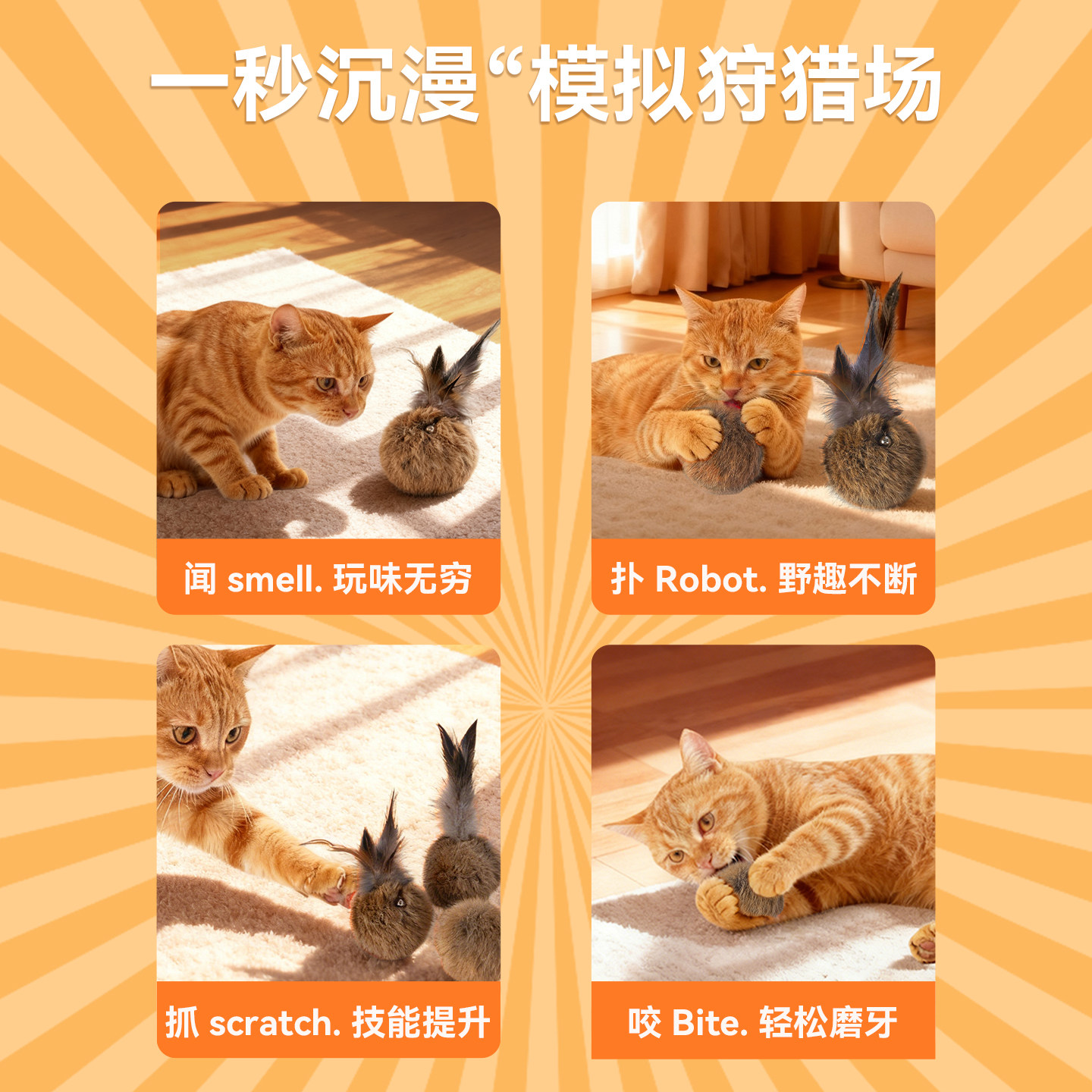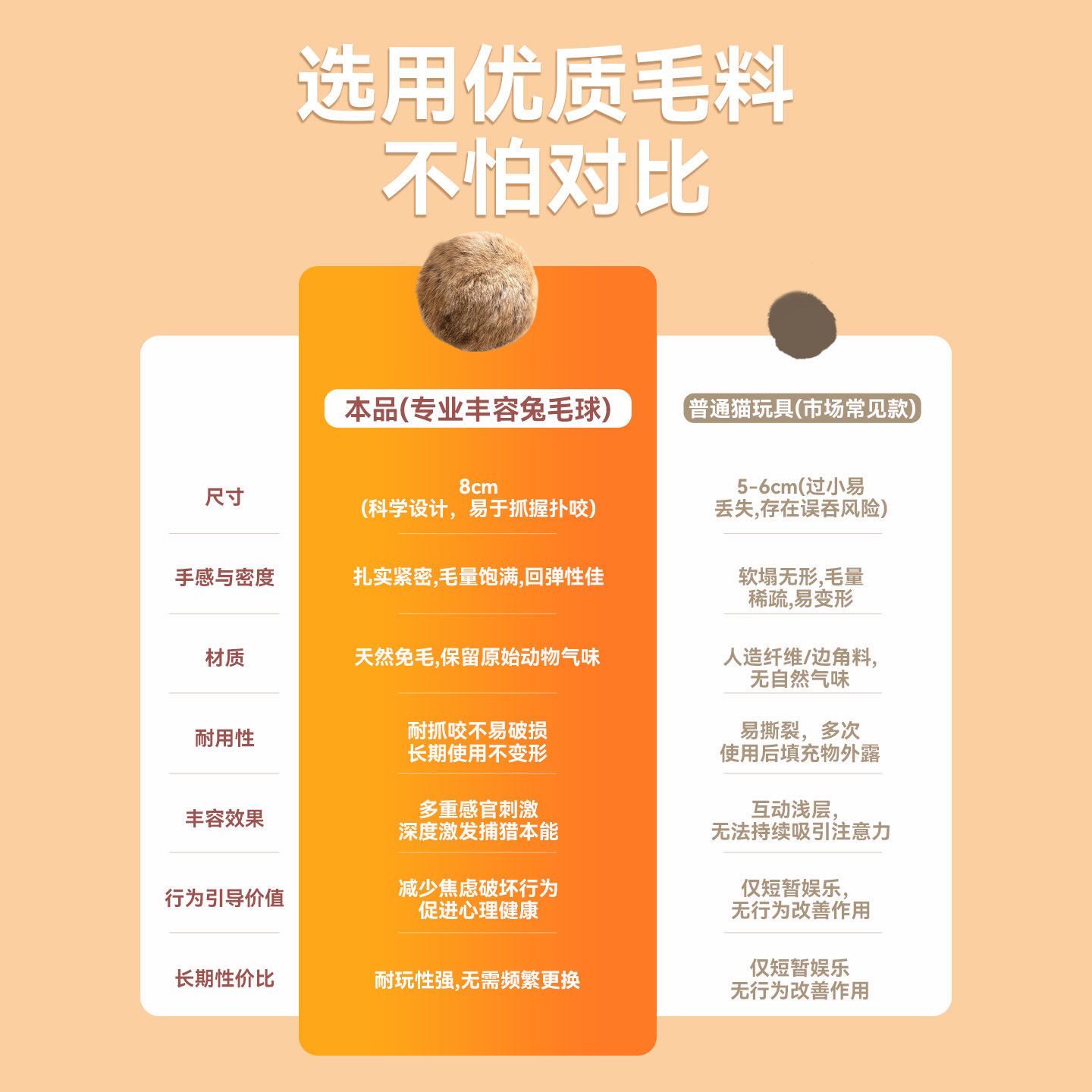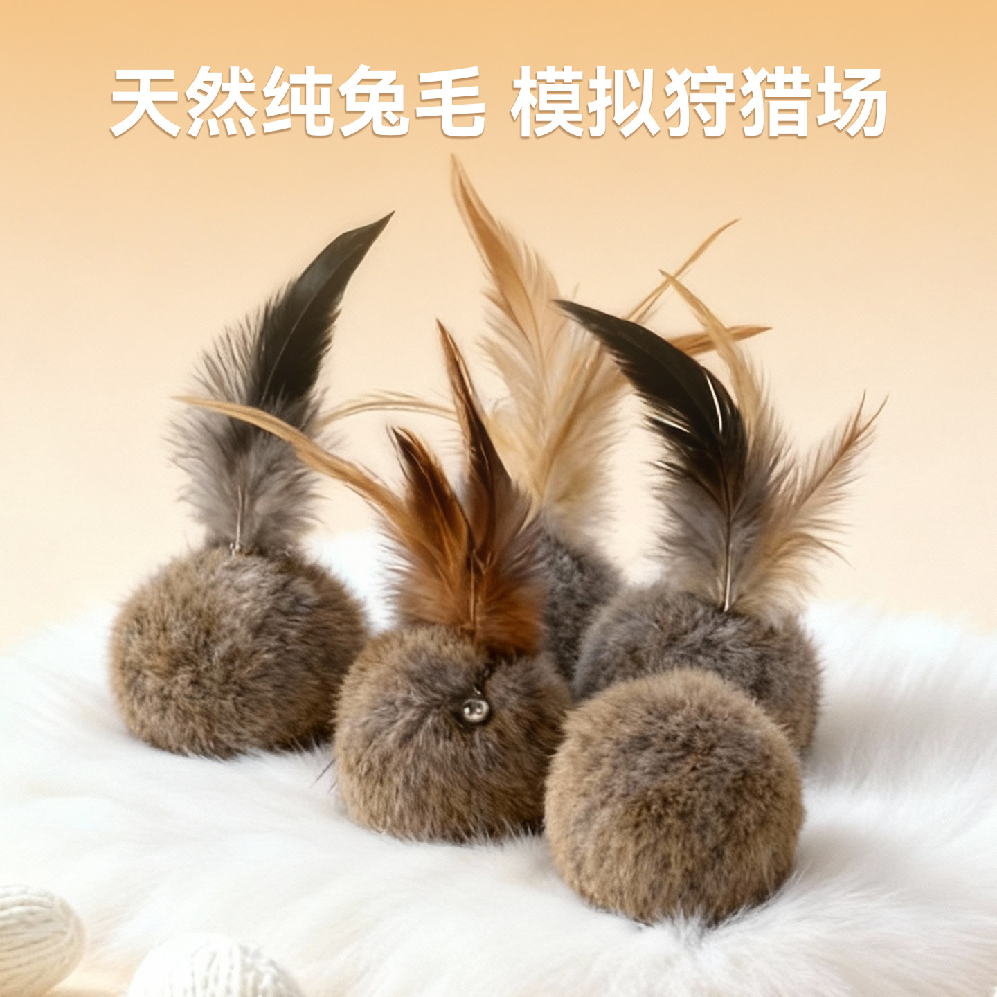📚 天然兔毛球猫玩具丰荣玩具小猫逗猫棒耐抓咬猫咪玩具自嗨解闷神器