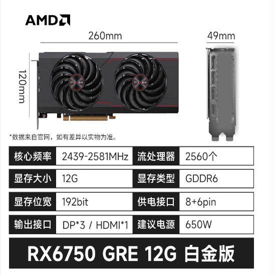 📚 全新盒装RX6750GRE显卡10g白色6750xt游戏7700xt蓝7800xt宝石12g