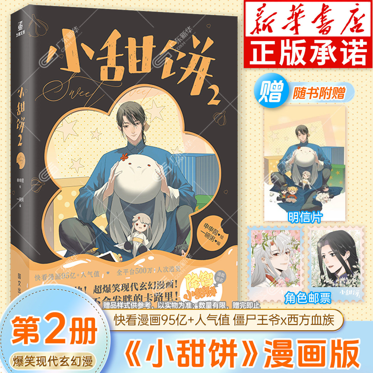 📚 【赠明信片+邮票×2】小甜饼漫画第2册 申申菌/绘 一碗粥/编 快看漫画95亿+人气值 僵尸王爷x西方血族 爆笑现代玄幻漫画