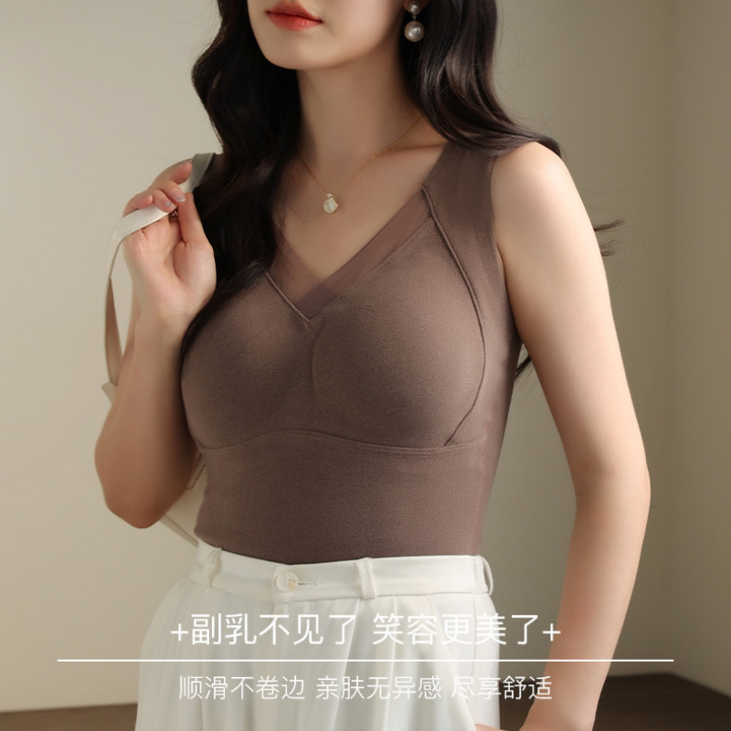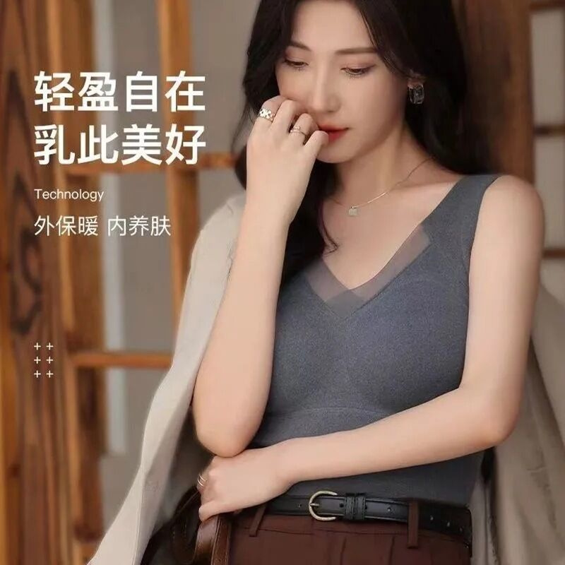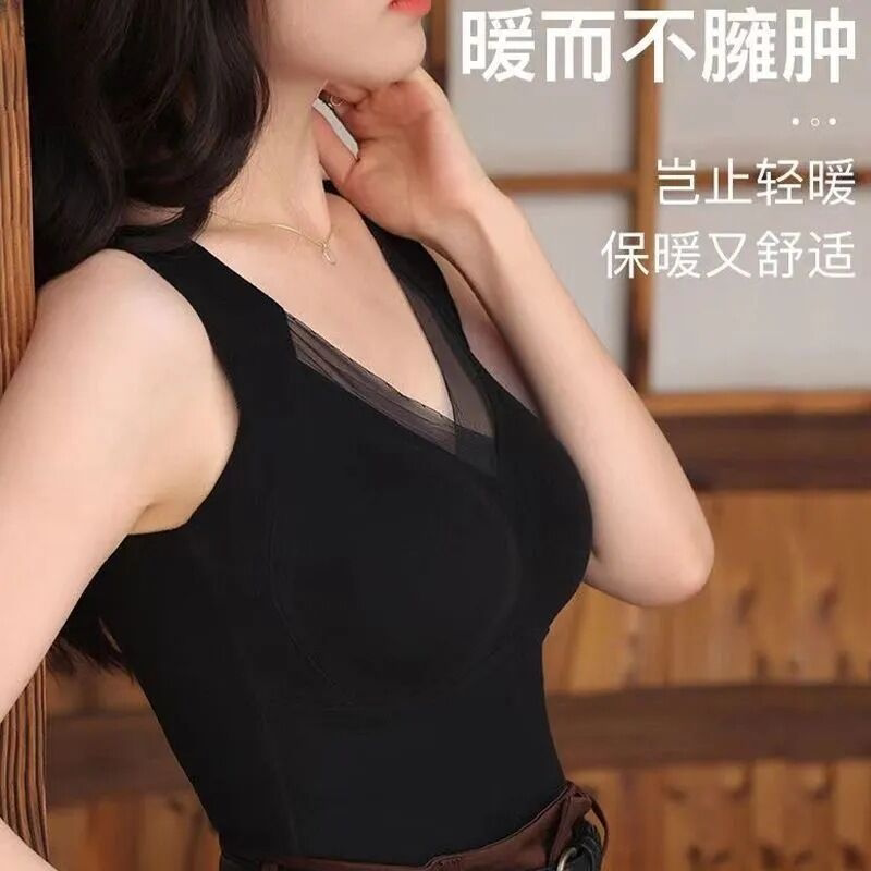 📚 秋冬石墨烯保暖内衣背心无痕修身打底上衣加绒德绒文胸磨毛肤色