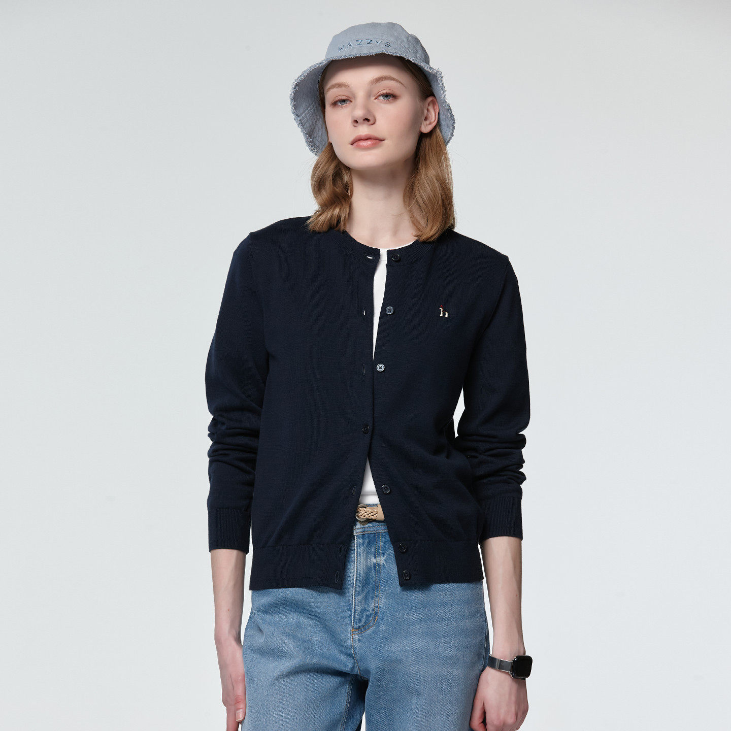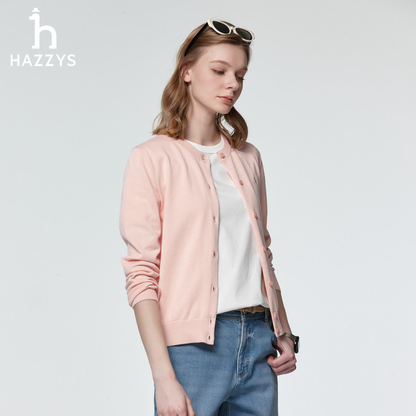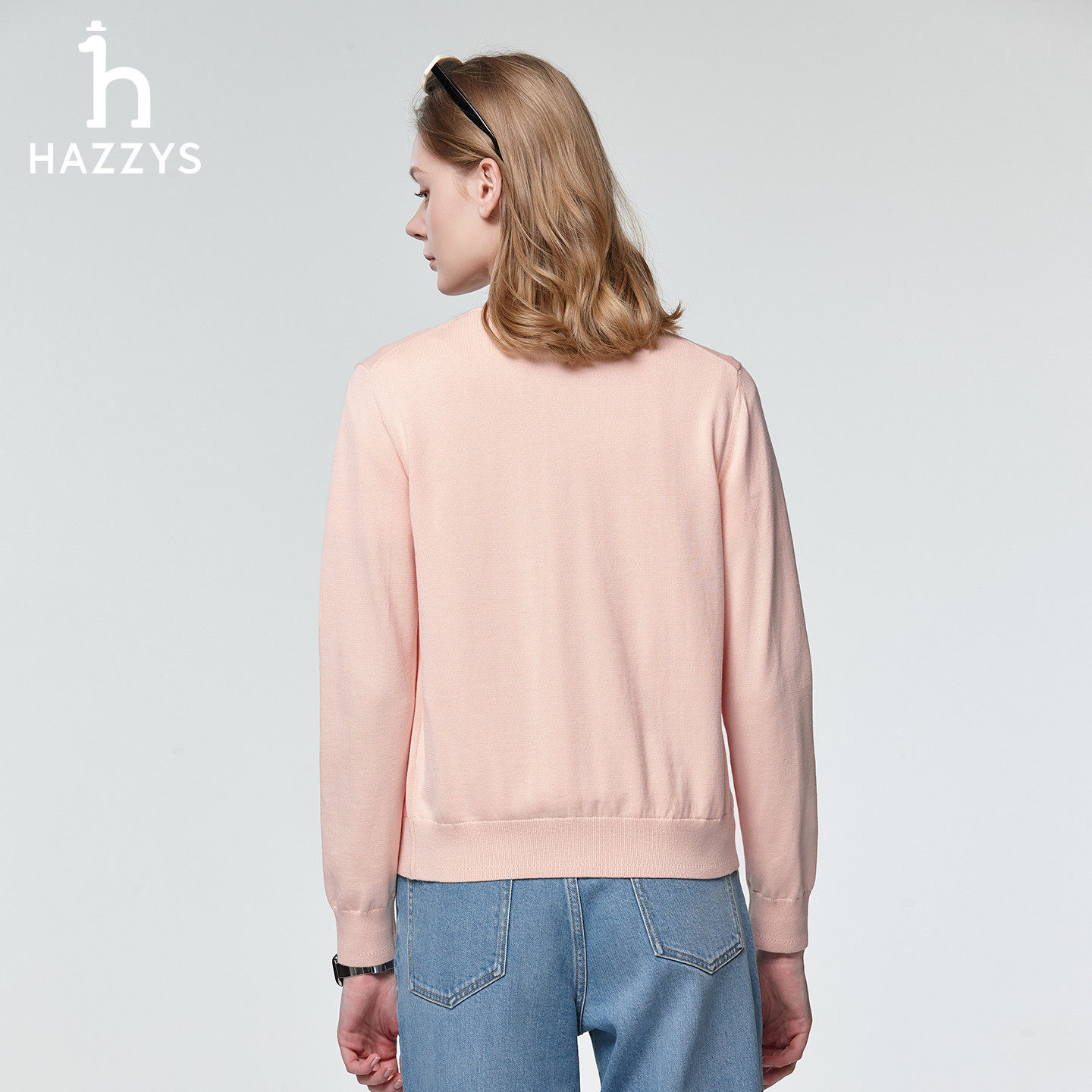 📚 Hazzys哈吉斯毛织开衫女士经典圆领针织衫通勤纯色休闲上衣外套潮