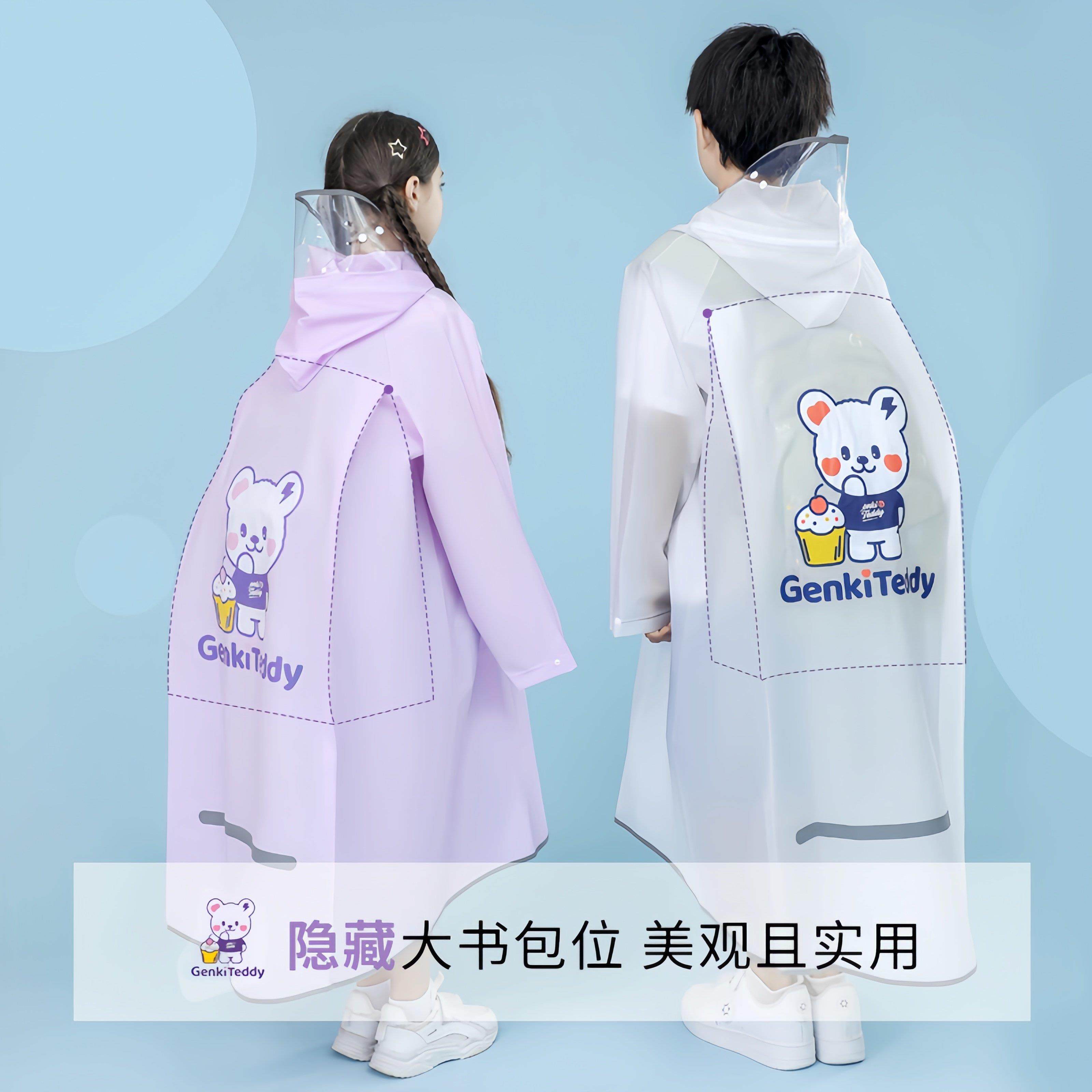 📚 小学生儿童雨衣、中学生长抗暴雨雨披、中学生带书包上学用雨衣