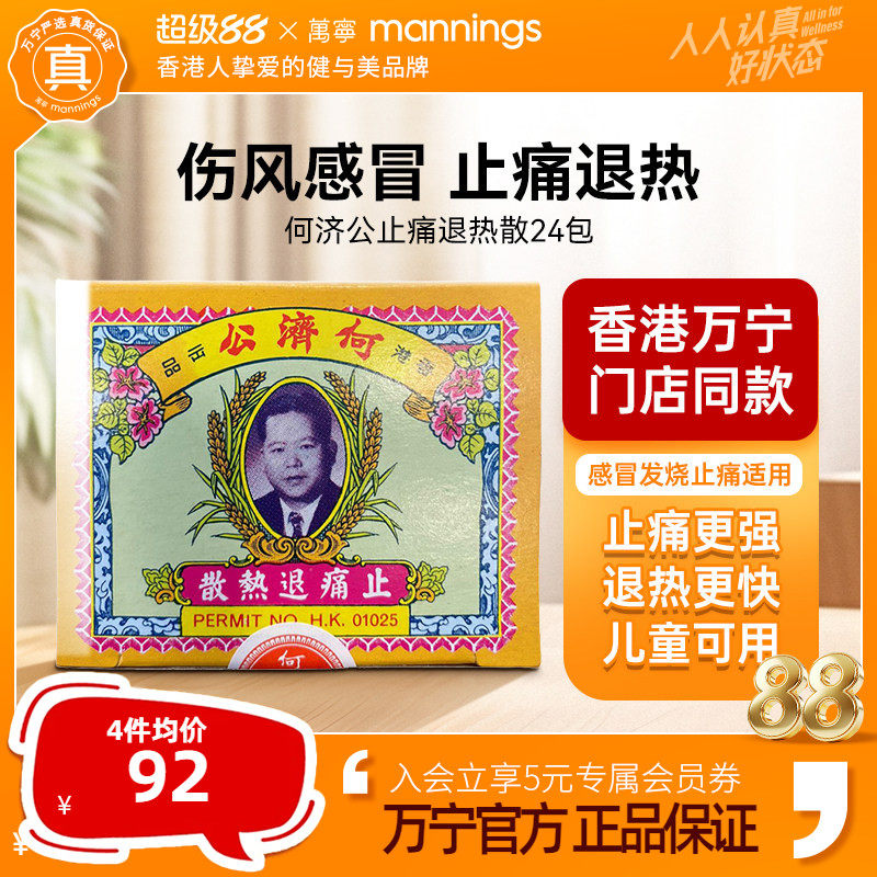 📚 万宁何济公香港止痛退热散对乙酰氨基酚止疼头痛牙痛感冒正品24包