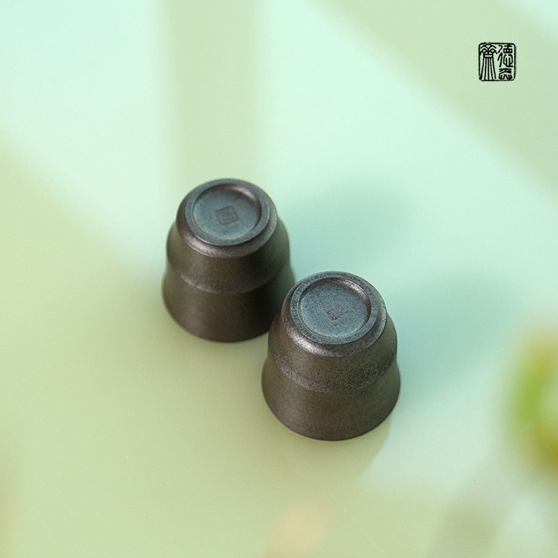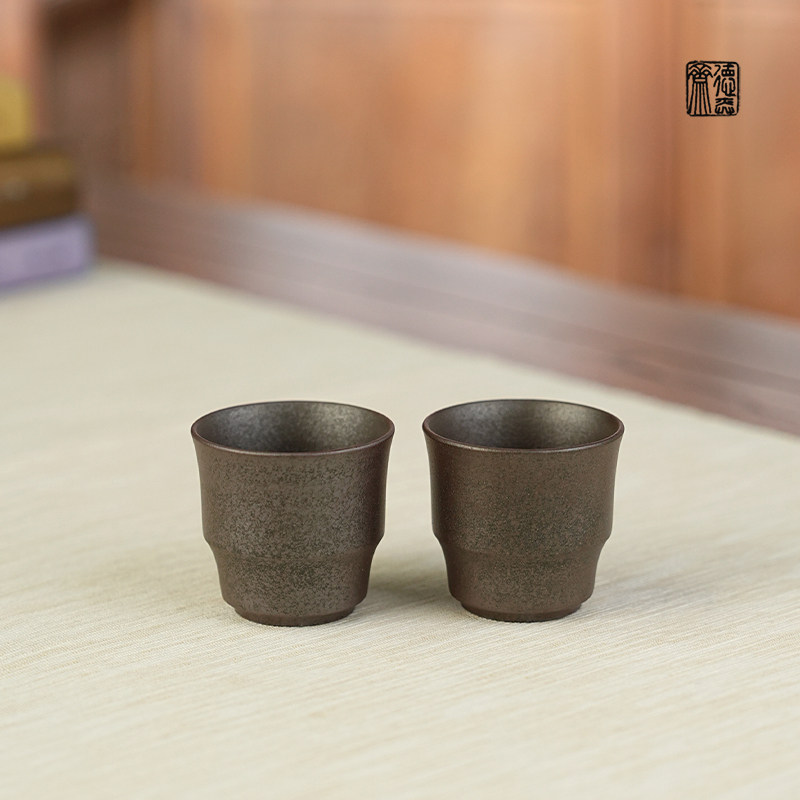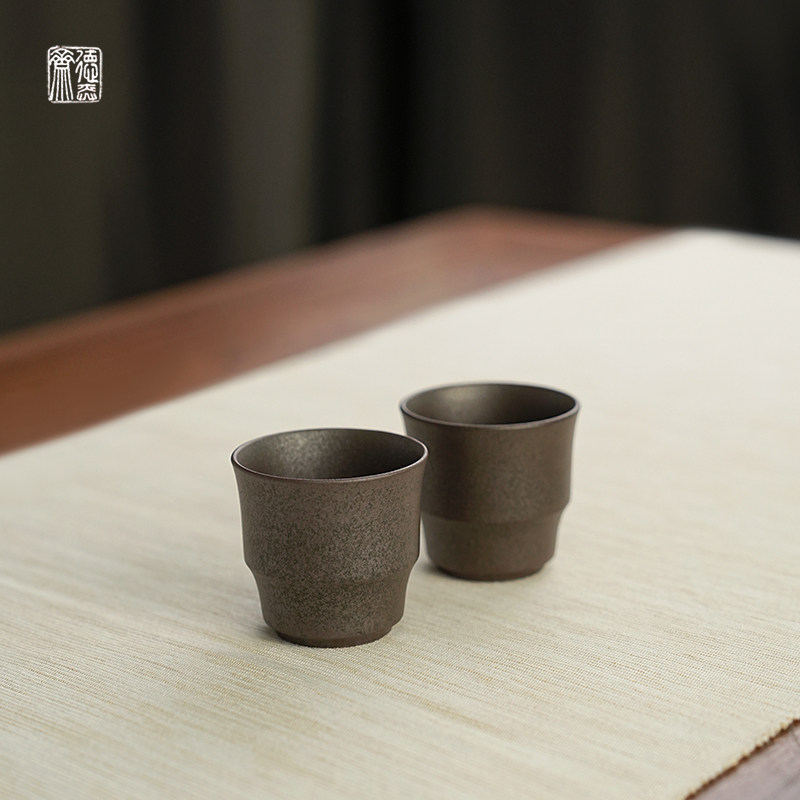 📚 德弈斋宜兴紫砂茶壶茶具茶杯中式复古风柴烧老清水泥竹韵杯一对