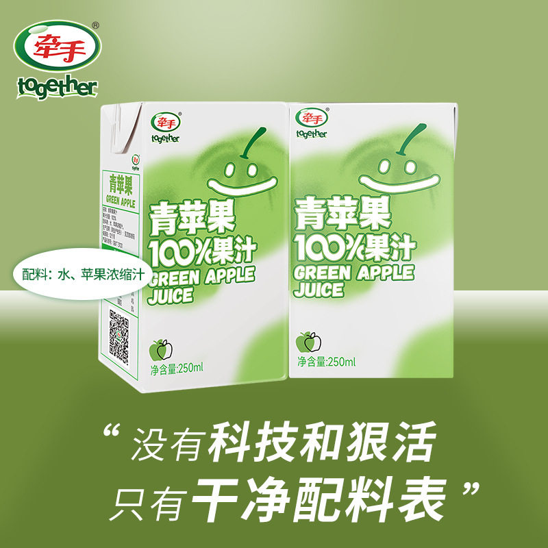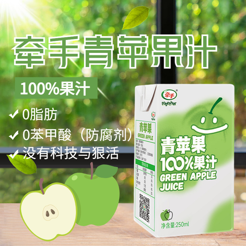 📚 牵手青苹果汁250ml*10盒整箱纯果汁果蔬饮料青果汁饮品官方