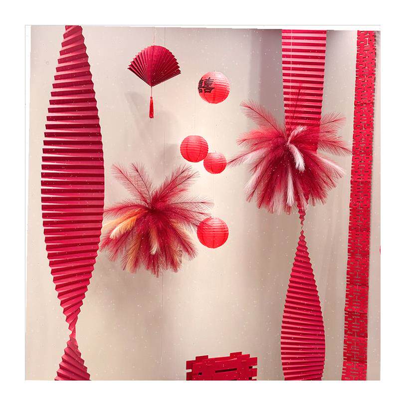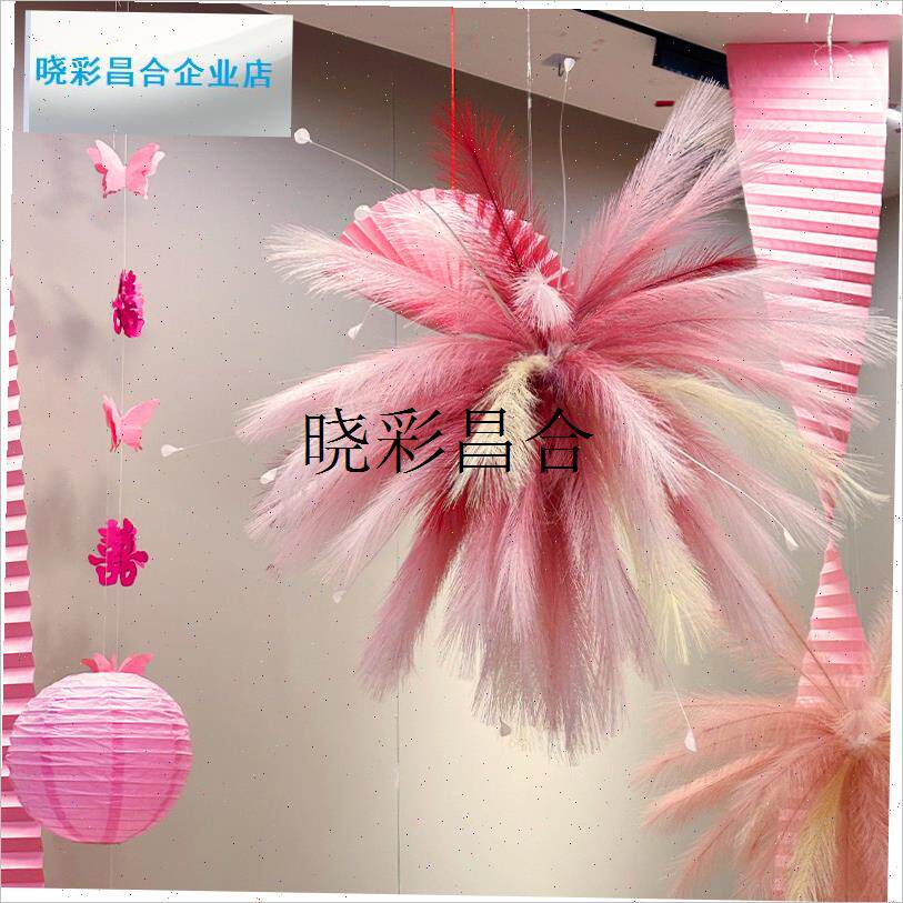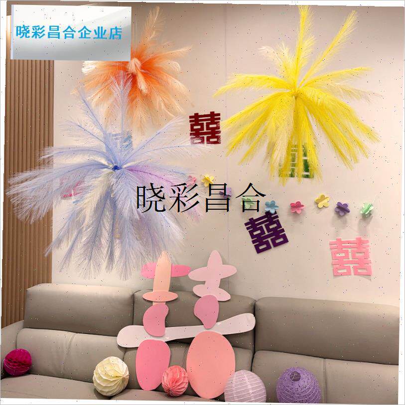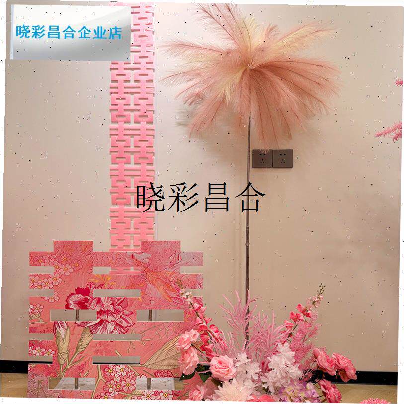 📚 婚房结婚仿真芦苇烟花羽毛孔雀草立柱晨袍拍照背布置Y装饰套装客l