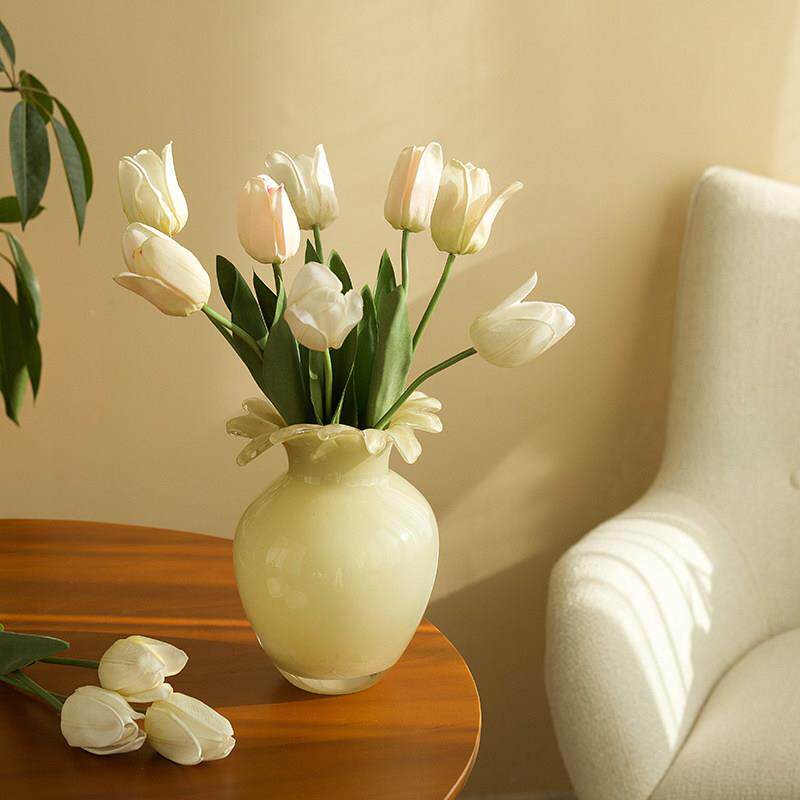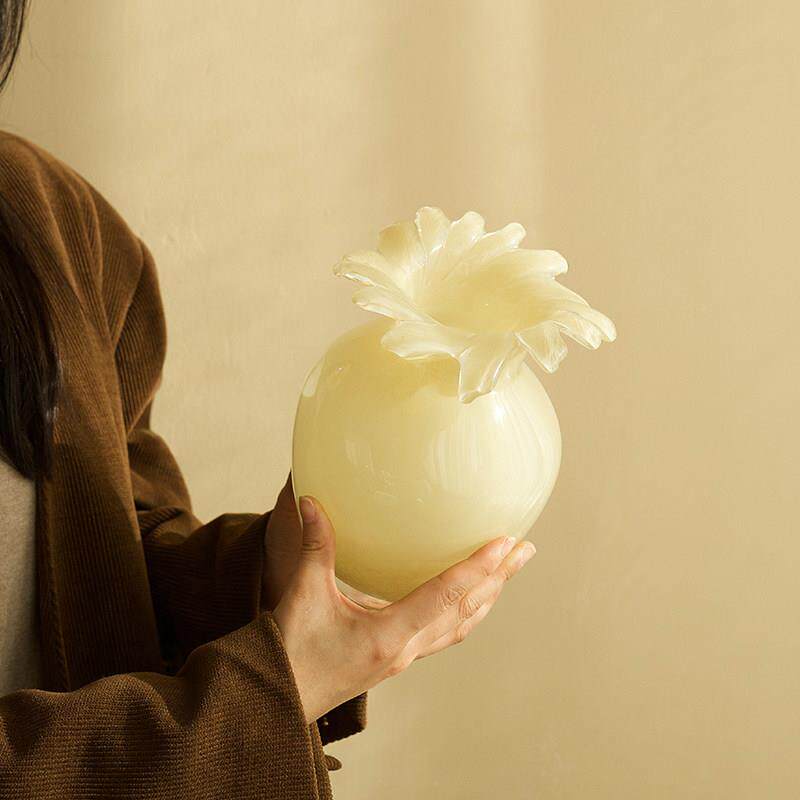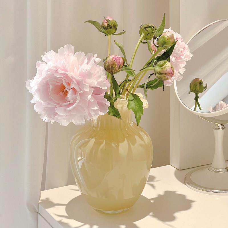 📚 中古芬顿花瓶高级感插花玻璃奶玉色摆件法式客厅餐桌水培插花花器