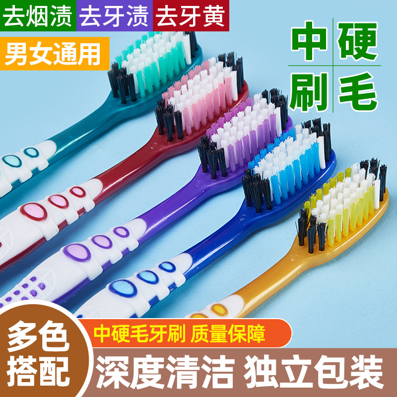 📚 硬毛牙刷中硬毛高档成人家用大头中老年人去牙渍烟渍牙黄独立包装
