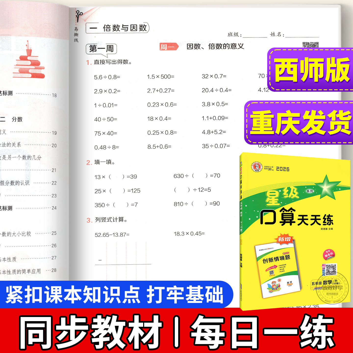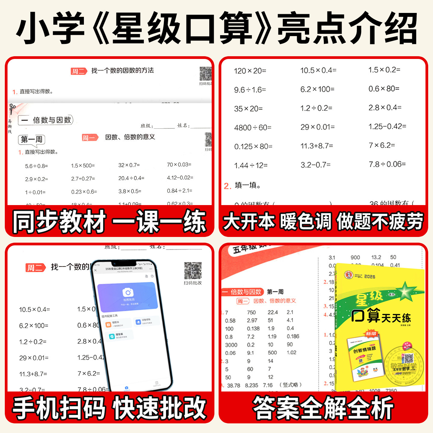 📚 2026新星级口算天天练西师版人教版一二年级三四五六年级上册下册荣德基小学数学同步训练习册速心计算题卡能手寒假作业北师大通关