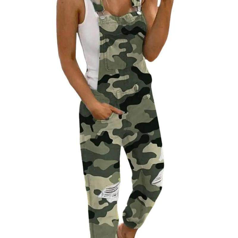 📚 Womens Ripped Bib Overalls Adjustable Straps Pockets Jean