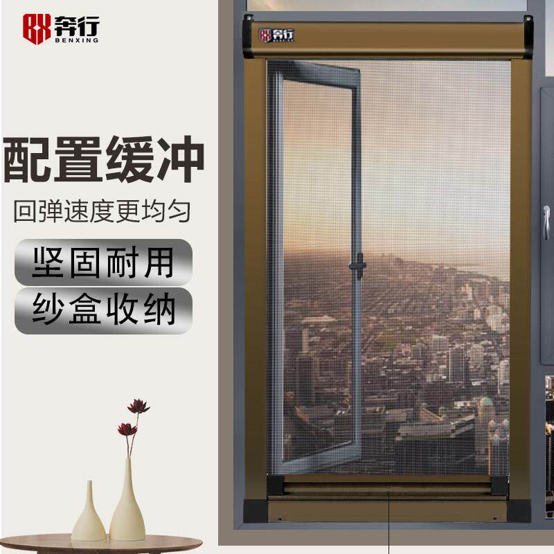 📚 奔行铝合金隐形纱窗上下伸缩推拉式平开 窗卷帘防蚊窗户沙窗网自