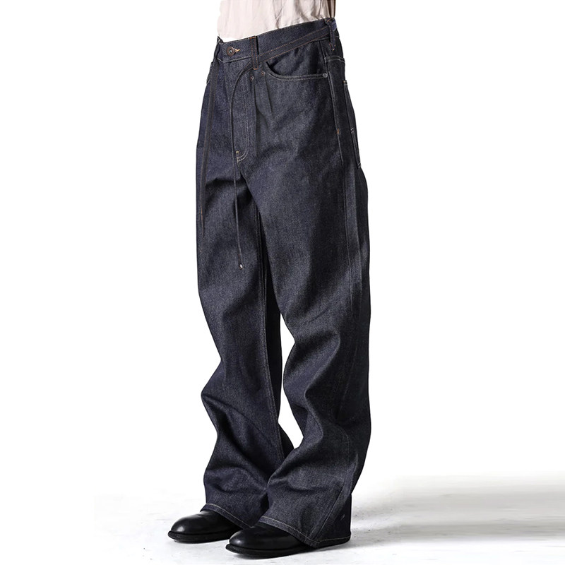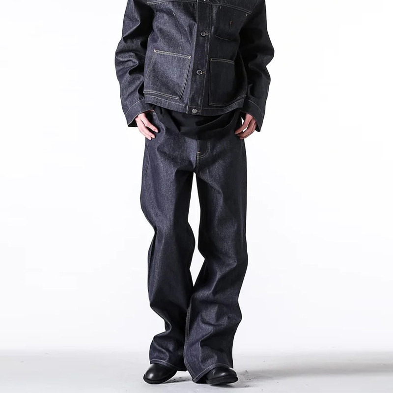 📚 【剑道双褶原牛版本】A字14OZ丹宁牛仔裤男女微喇廓形宽松直筒裤