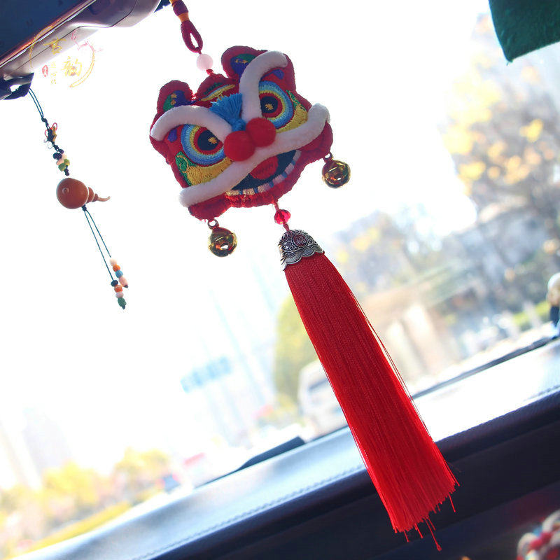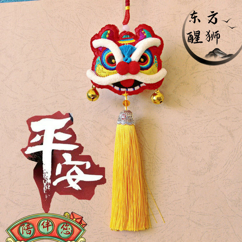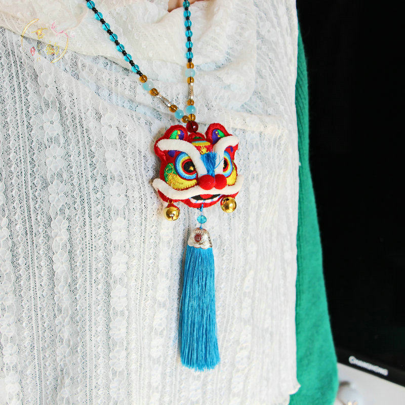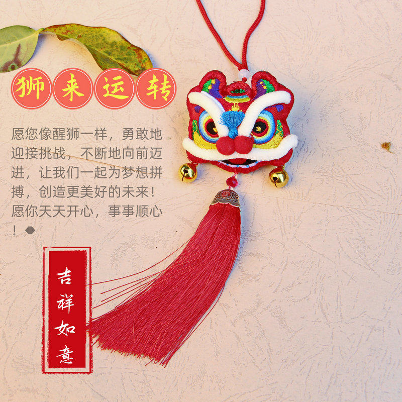 📚 中国风布艺刺绣花醒狮平安车挂书包香包挂汽车钥匙扣挂饰项链礼品