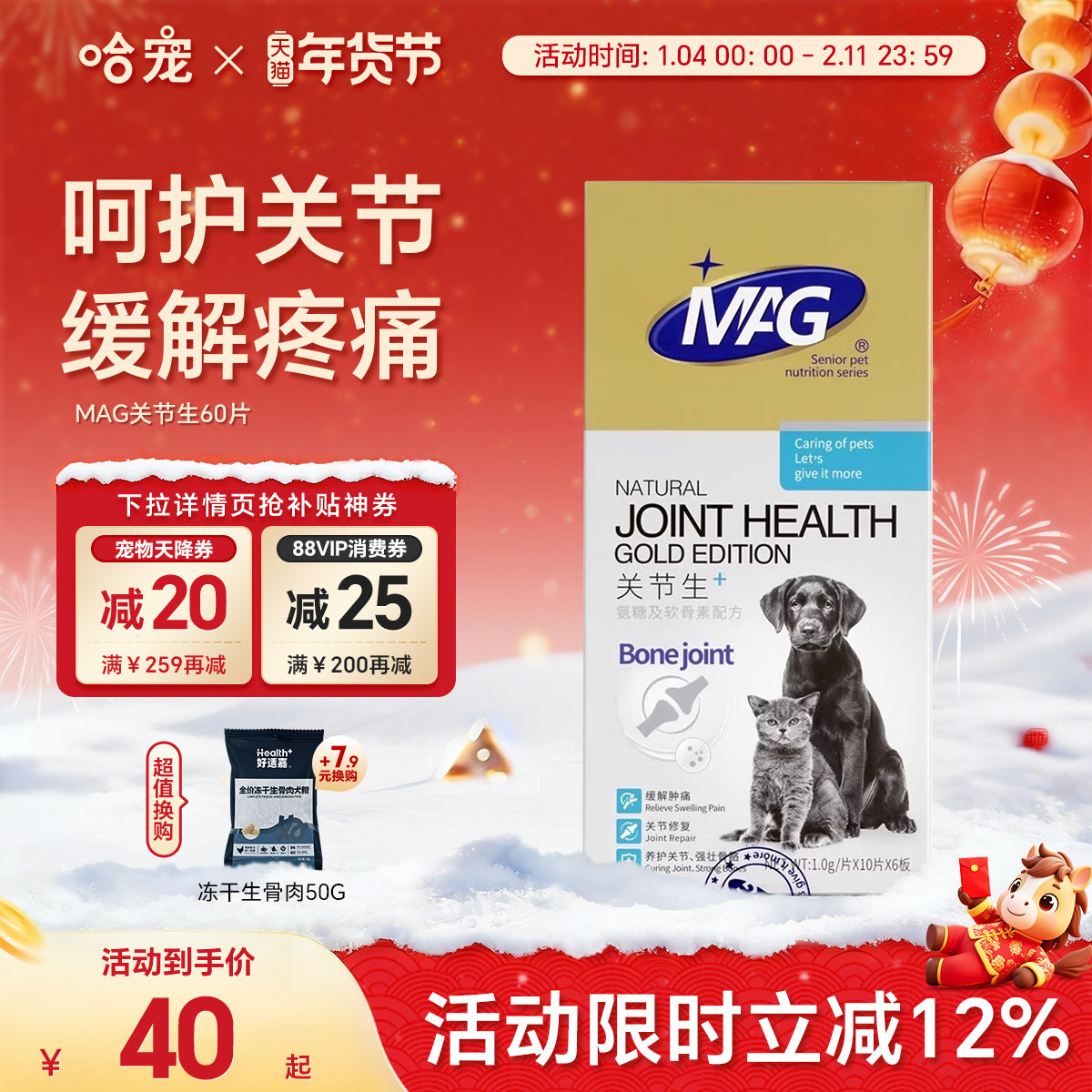 📚 MAG关节生猫咪狗狗老年犬折耳猫鲨鱼软骨素关节宝宠物瘸腿关节灵