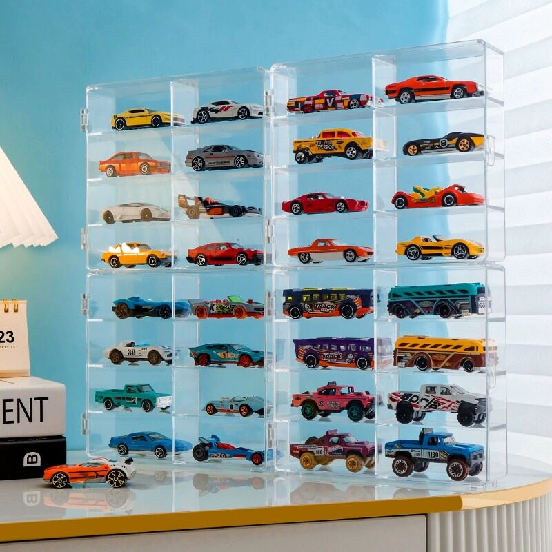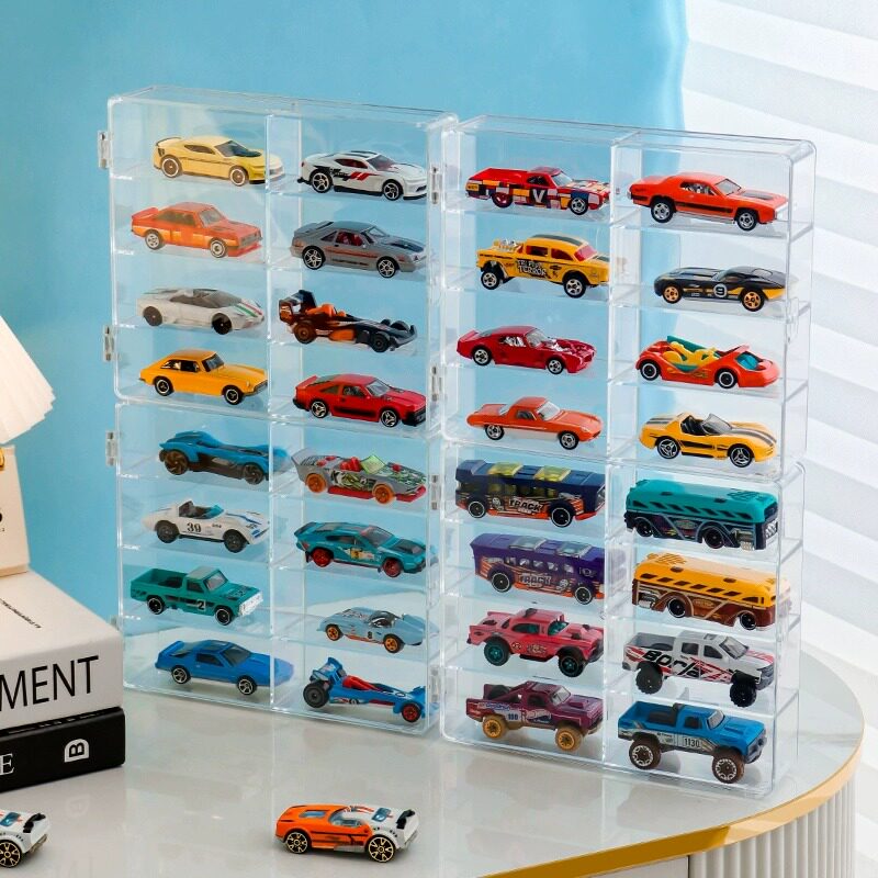 📚 风火轮收纳盒合金小汽车模型TOMICA1:64儿童玩具多美卡透明收藏架