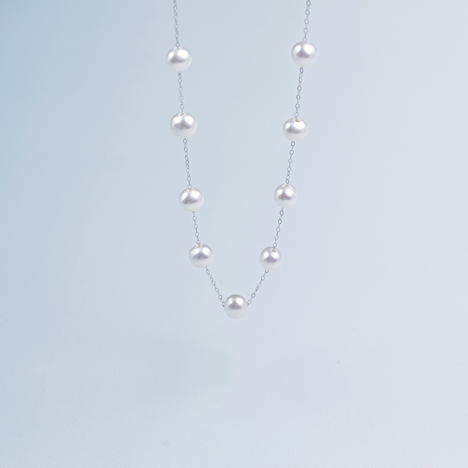 📚 ANGEPERLE/天使之泪淡水珍珠满天星套链铂金PT900+银堵头5-6mm