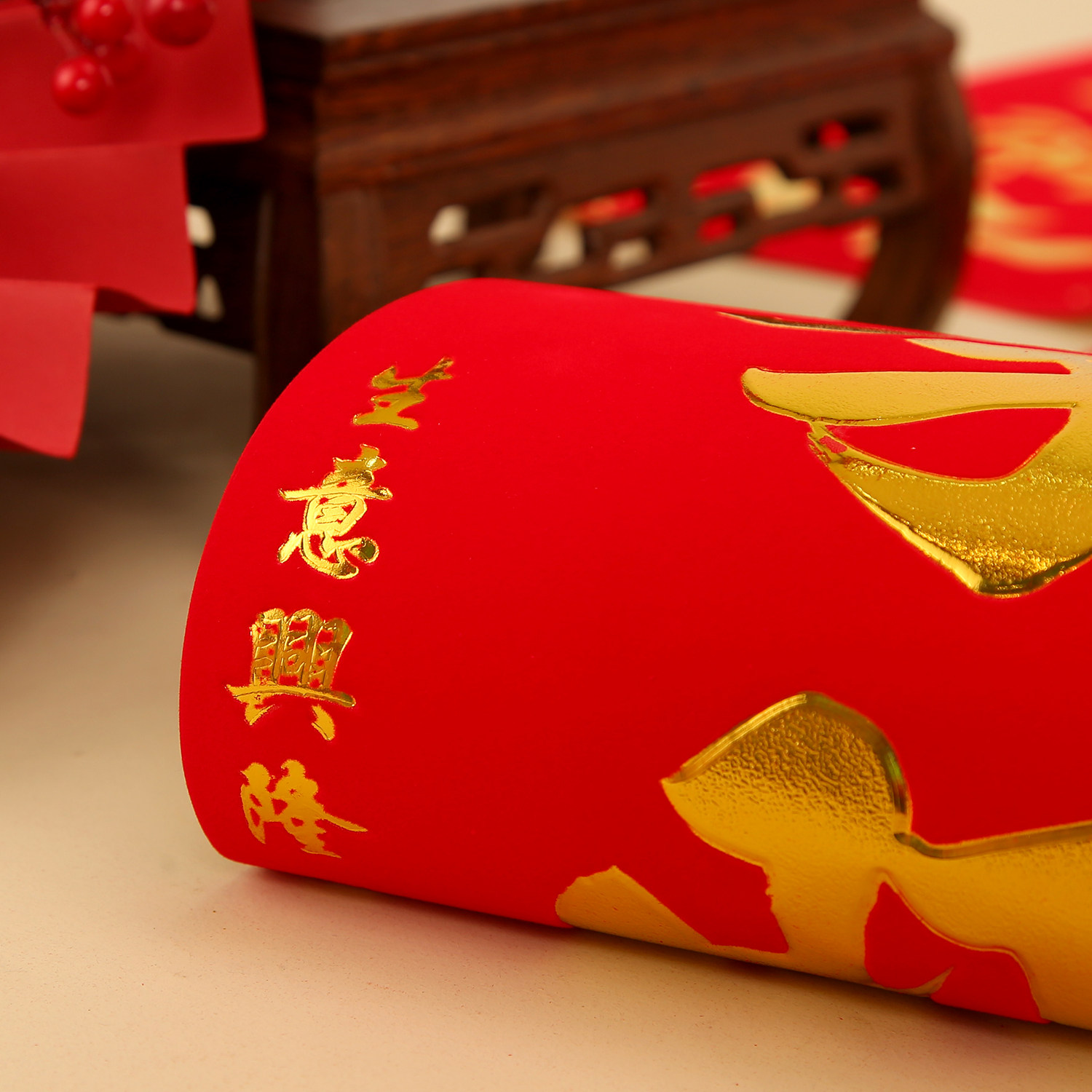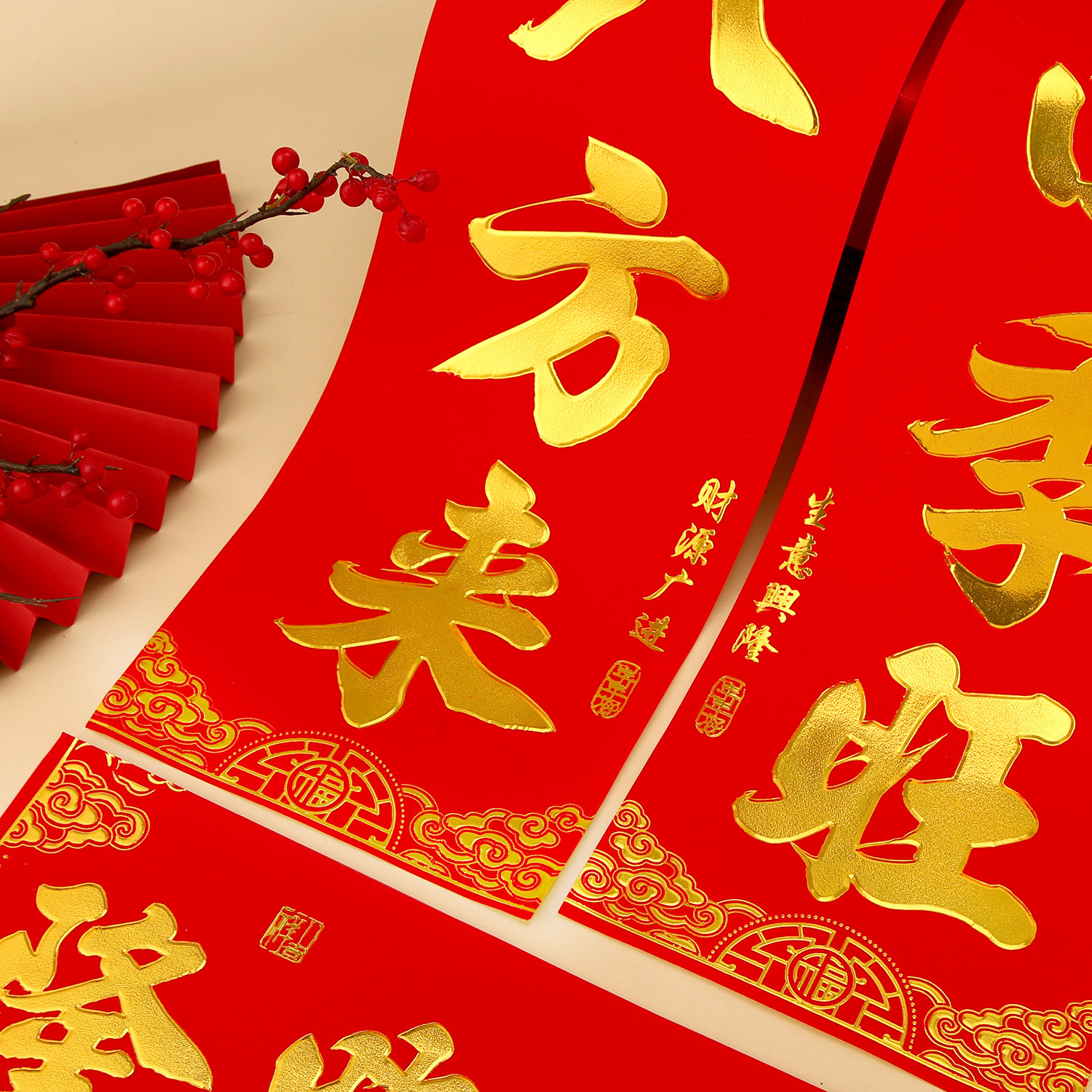 📚 2026年新款金字背胶植绒春联对联厂家直销全胶店面生意词工厂企业