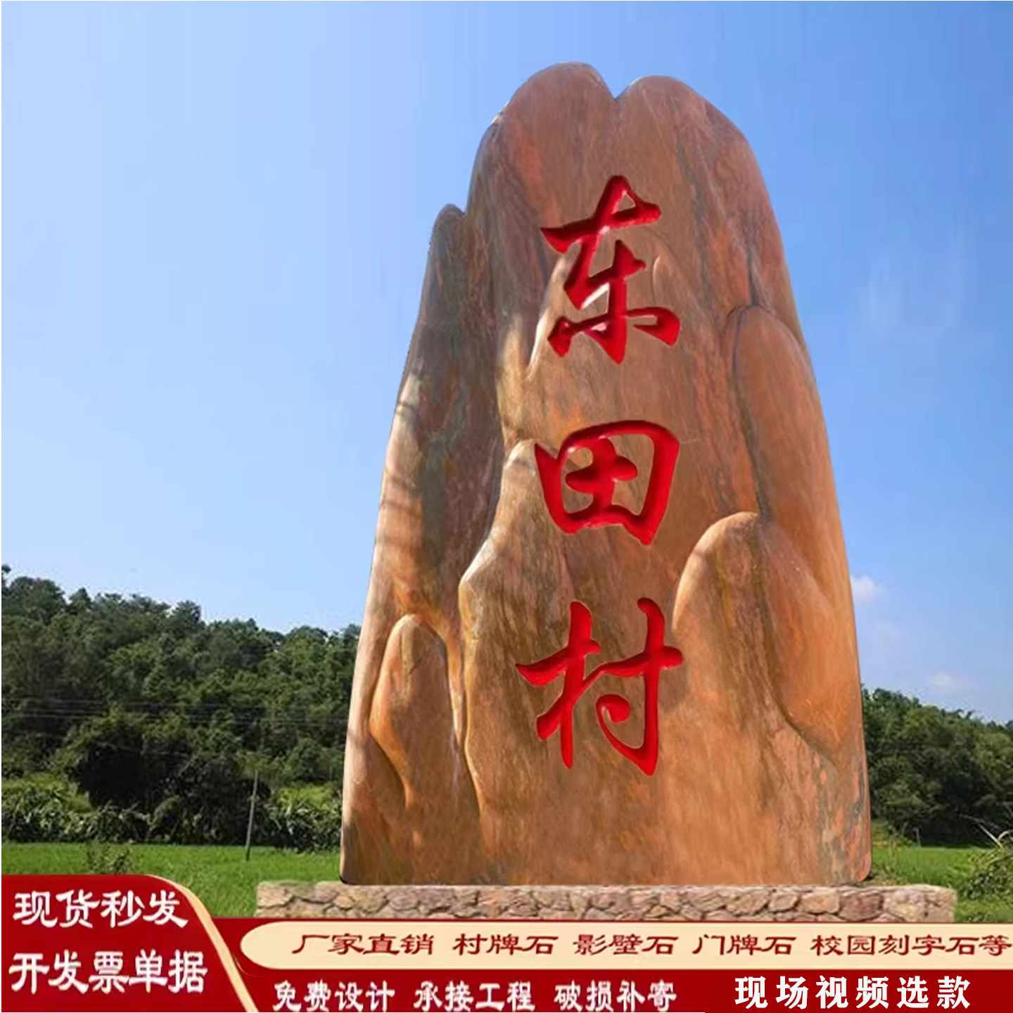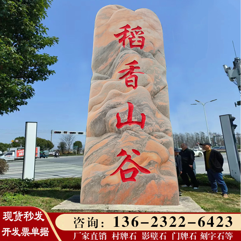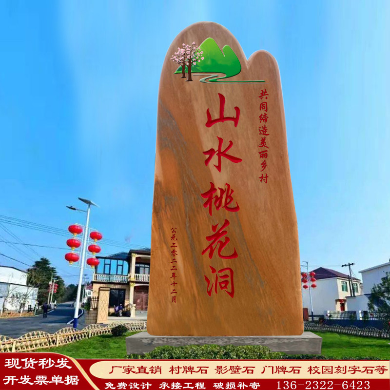 📚 村牌石刻字景观石大型风景石村标石碑路口指示牌公园广场造景石头