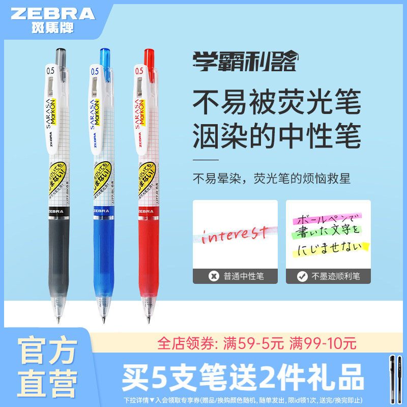 📚 日本ZEBRA斑马官方旗舰店官网JJ77中性笔不易被荧光笔晕染按动式ins日系中小学生黑红色签字笔笔记可换替笔芯
