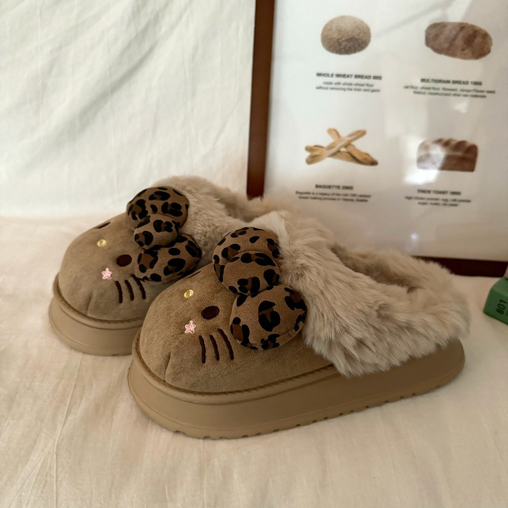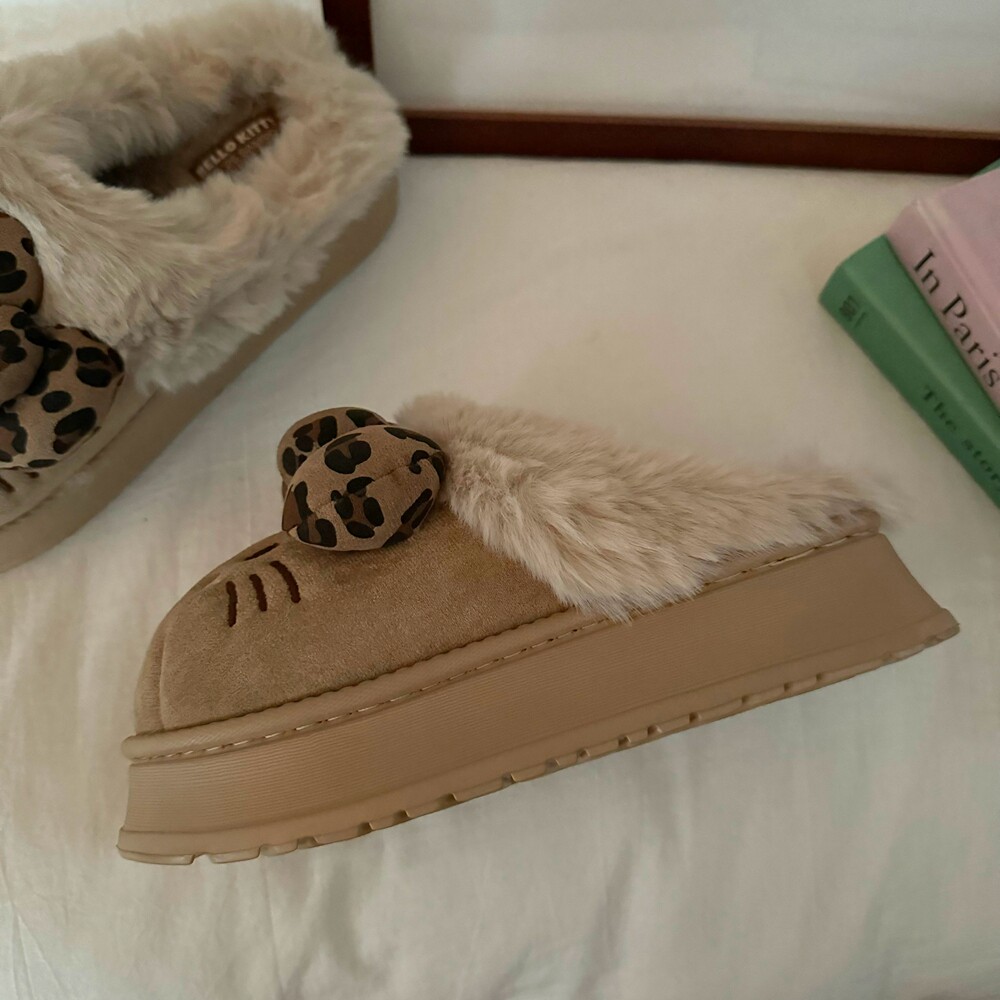 📚 林先叁 2025新款可爱kitty猫毛毛鞋女圆头厚底加绒保暖包头拖鞋