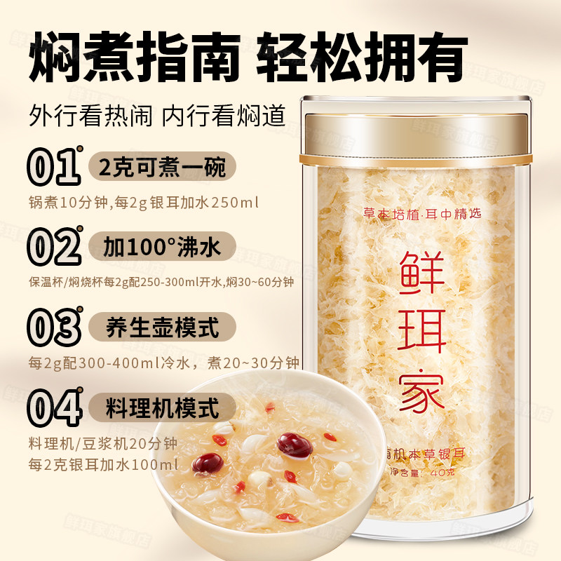 🌿首先说说这款银耳羹的原材料——古田本草银耳、高山草本和白木耳。这些原材料都是来自天然无添加的高品质食材,保证食品安全健康。而且,它们经过精心制作,冲泡即食,方便快捷,简直是懒人的福音。