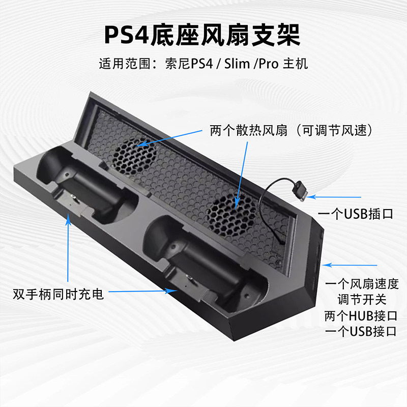 📚 适用于ps4/pro/slim主机充电散热底座ps4手柄充电散热收纳游戏碟片多功能支架ps4主机直立架 ps4 pro散热风扇