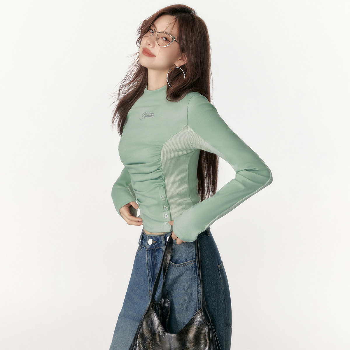 📚 【49/件】EPTISON长袖针织打底衫2025秋季新款短款修身减龄上衣女
