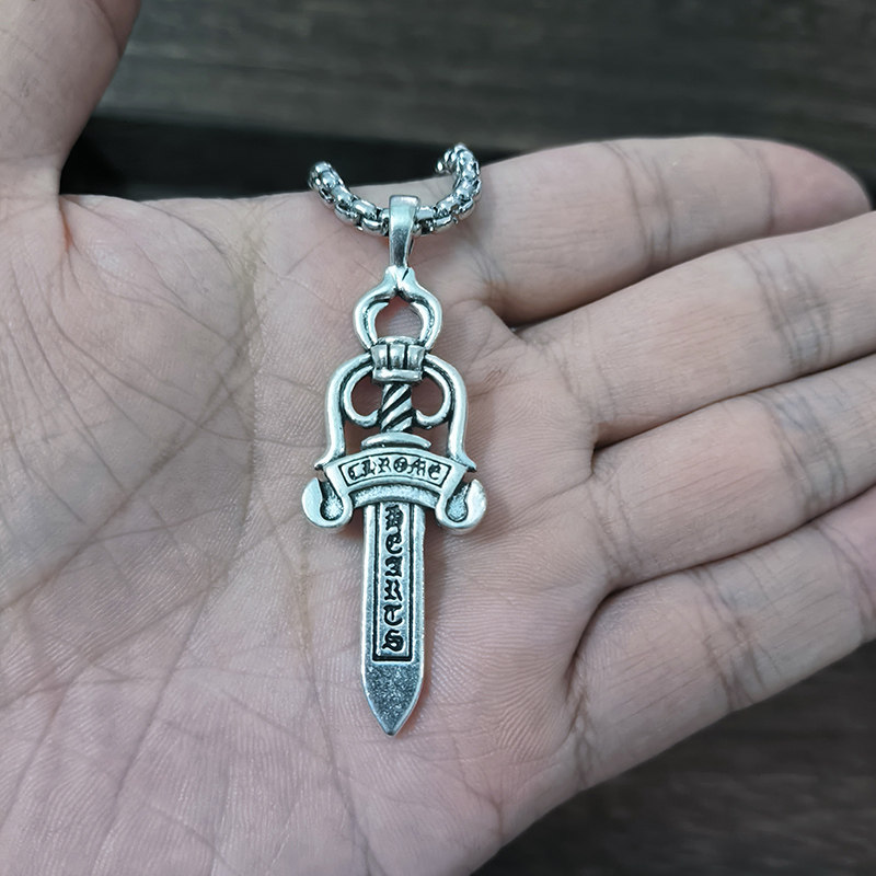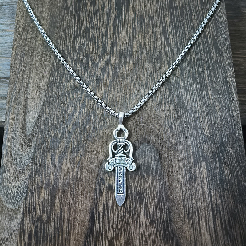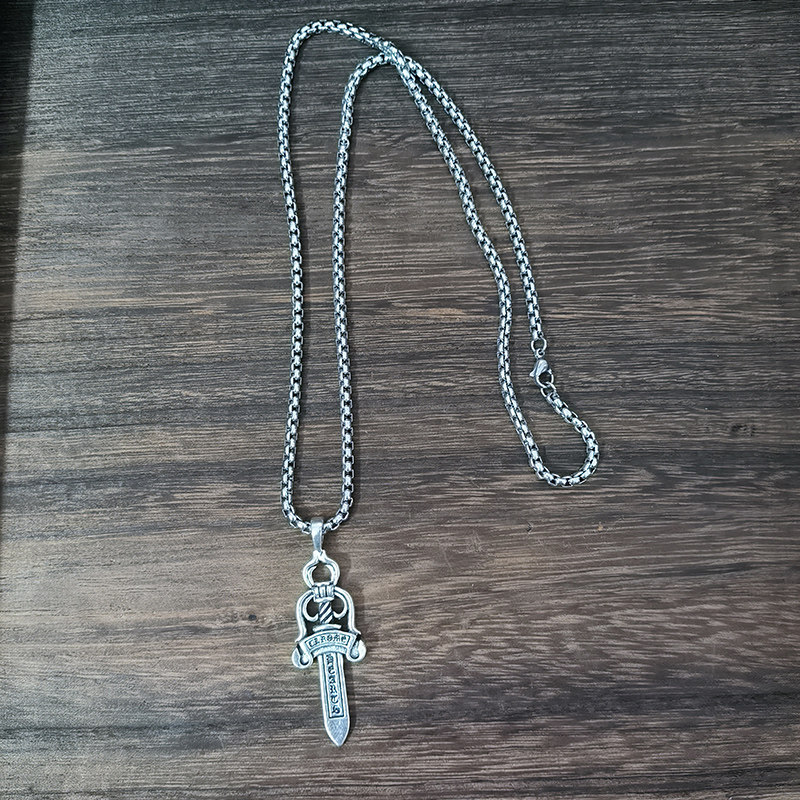 📚 王嘉尔薛之谦同款欧美小众复古合金镀银克罗男女礼物圣剑吊坠项链