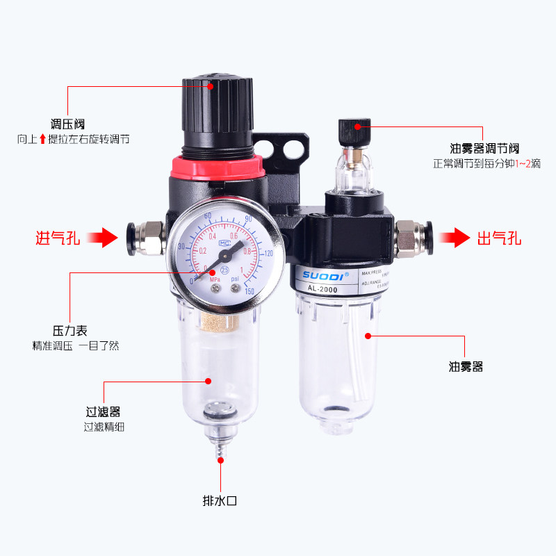 📚 SUODI油水分离器AFC2000二联件空气过滤器气源处理器AFR+AL2000