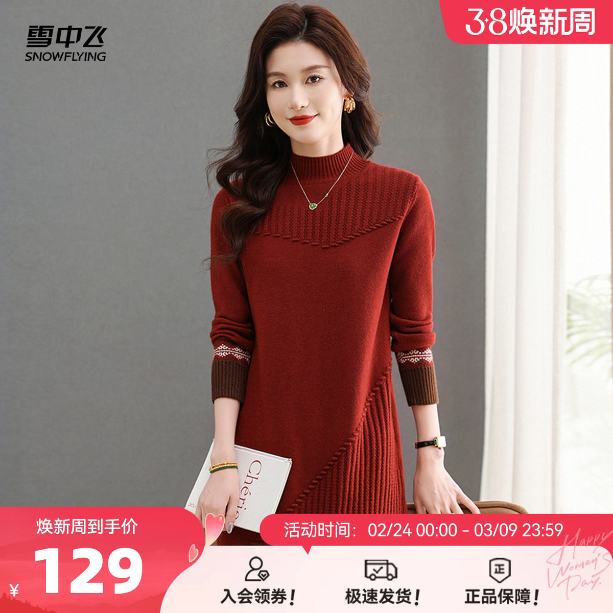📚 雪中飞26秋新款女士中长款厚毛衣针织打底上衣温暖舒适连衣裙W