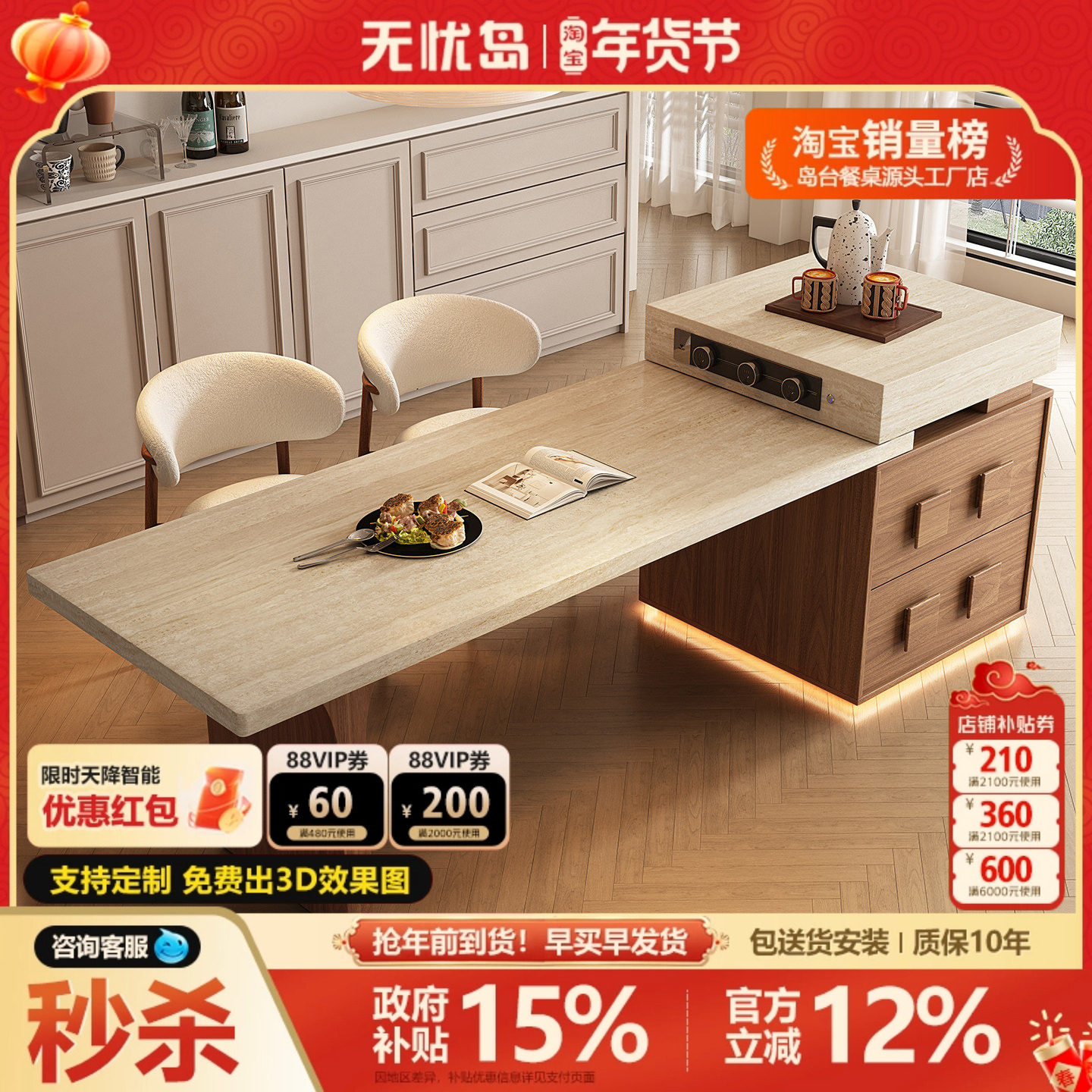 68¥ HU591 kPjLU96f3Gg¥ https://m.tb.cn/h.7upHJWn 2026新款复古风洞石岛台餐桌一体家用可伸缩小户型高端厨房中导台 --------------------- 【原售价】5,973元 【现售价】4,267元。