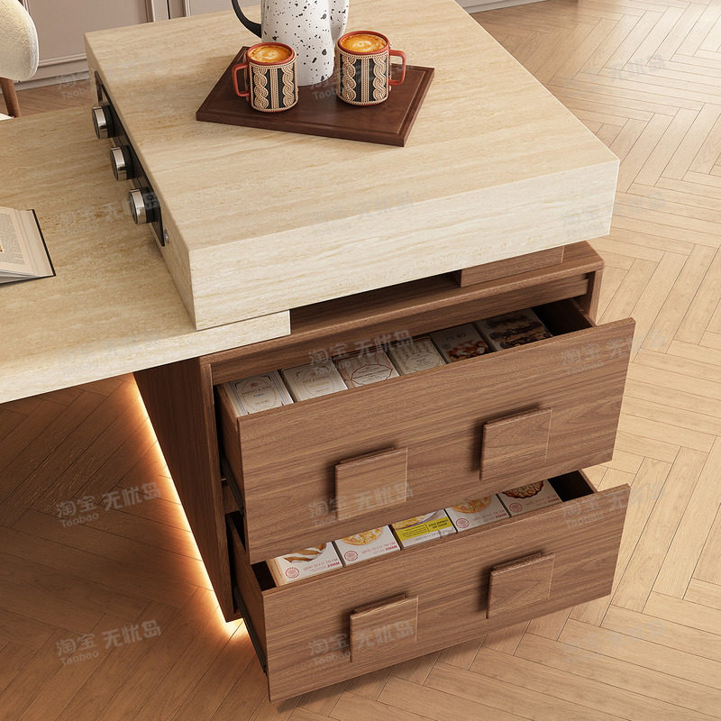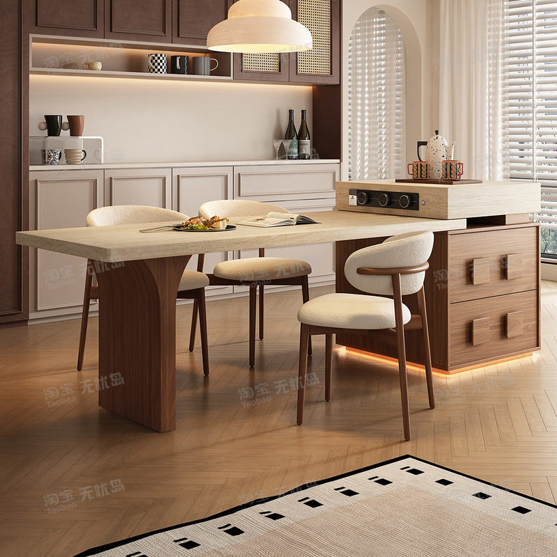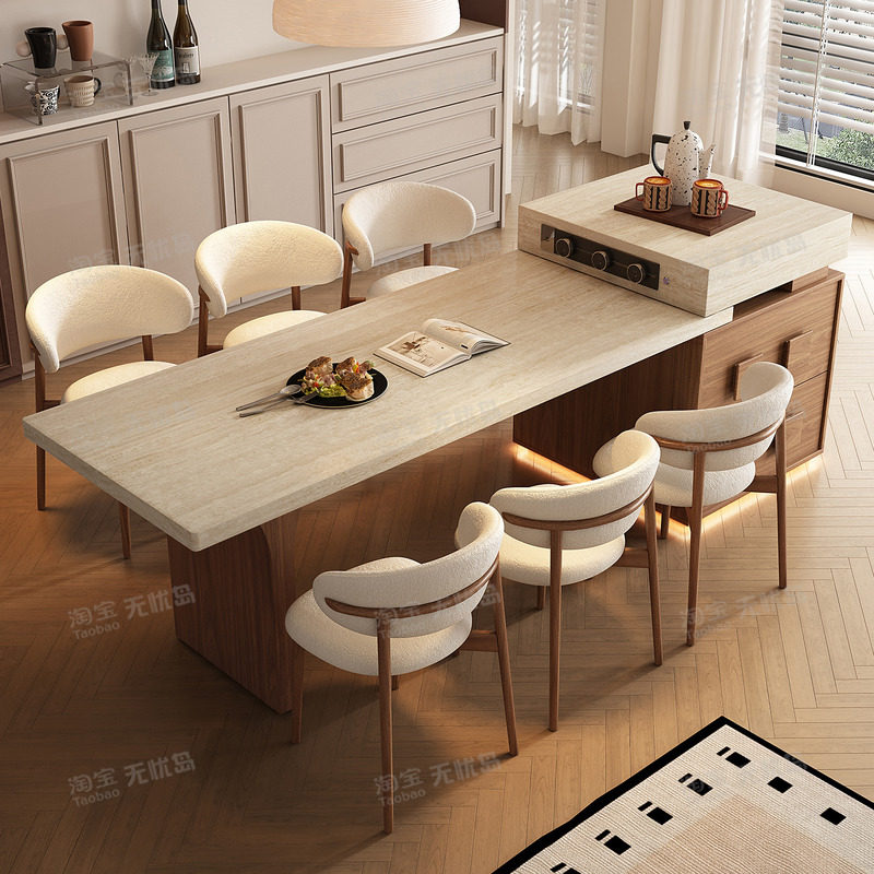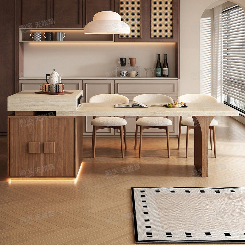 📚 2026新款复古风洞石岛台餐桌一体家用可伸缩小户型高端厨房中导台