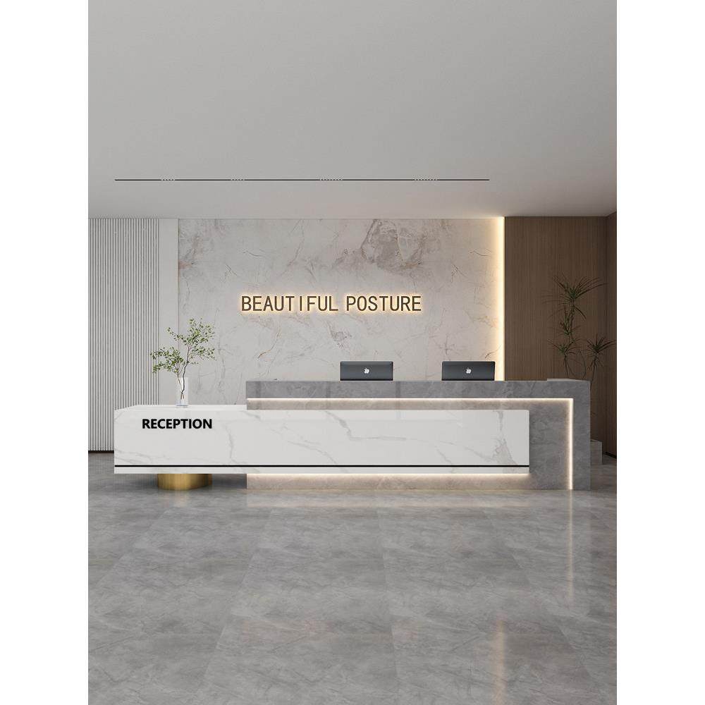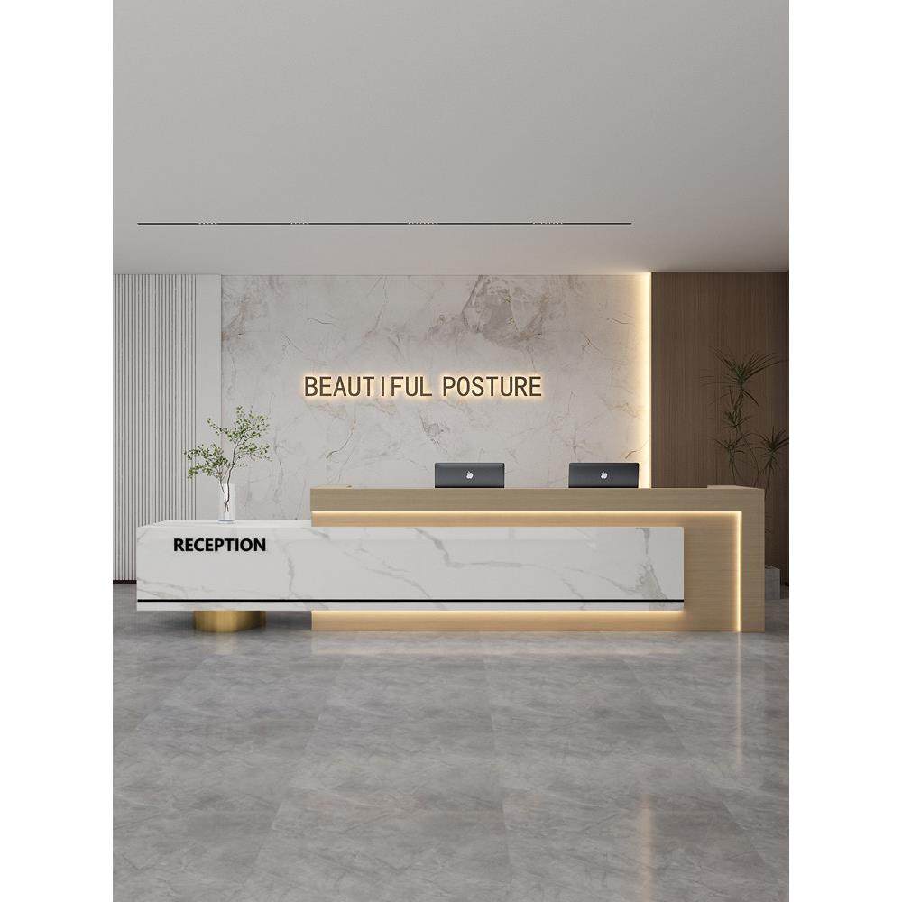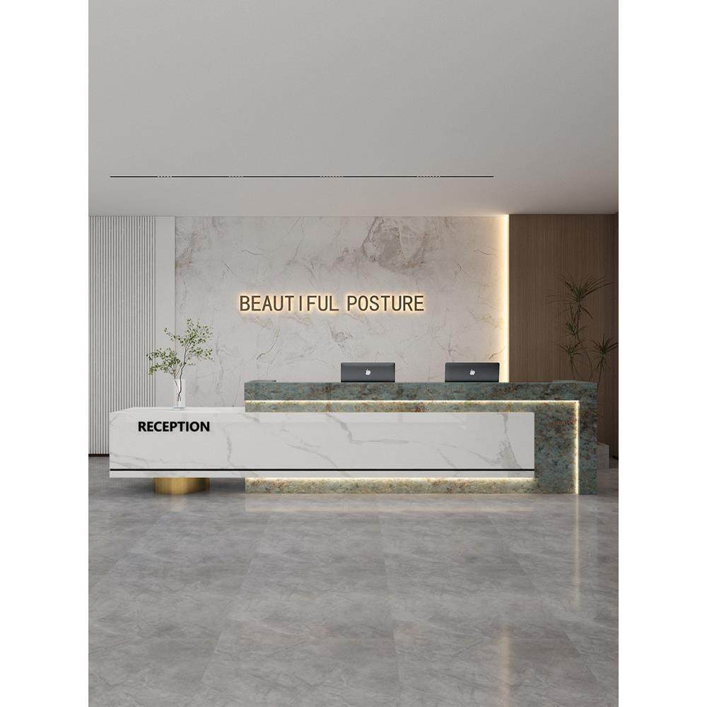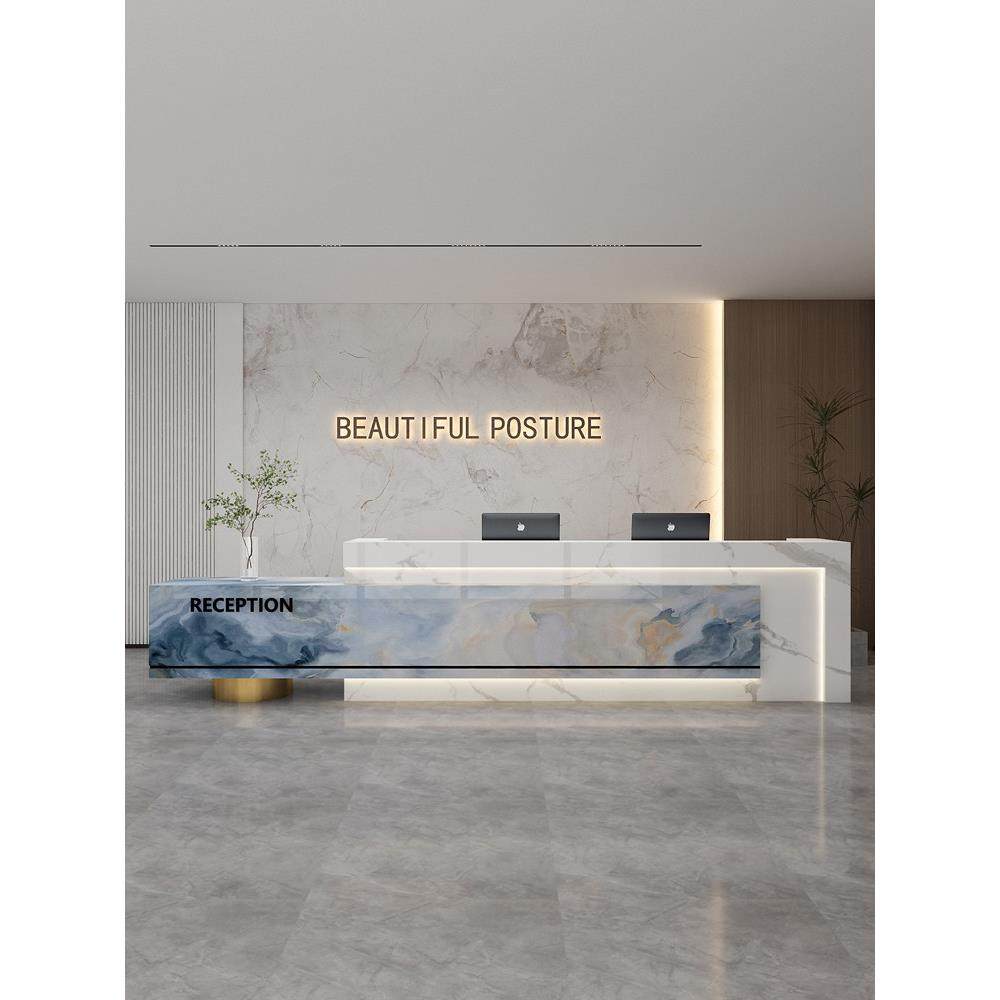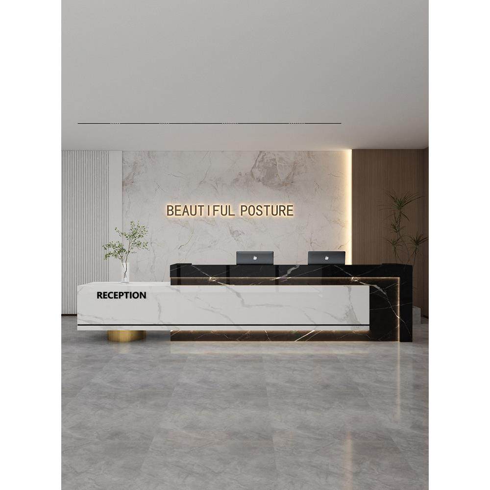 📚 岩板大理石公司前台酒店售楼部接待台健身会所吧台简约现代收银台