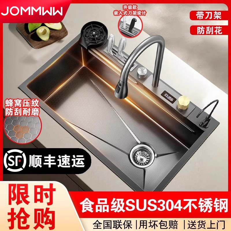 📚 飞雨瀑布水槽大单槽蜂窝加厚SUS304不锈钢厨房洗菜盆家用洗碗池