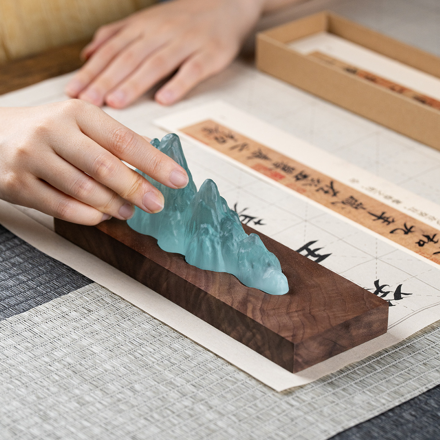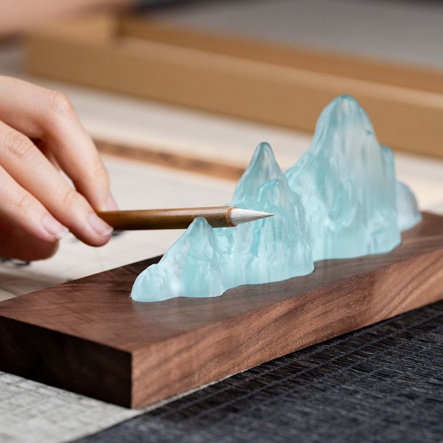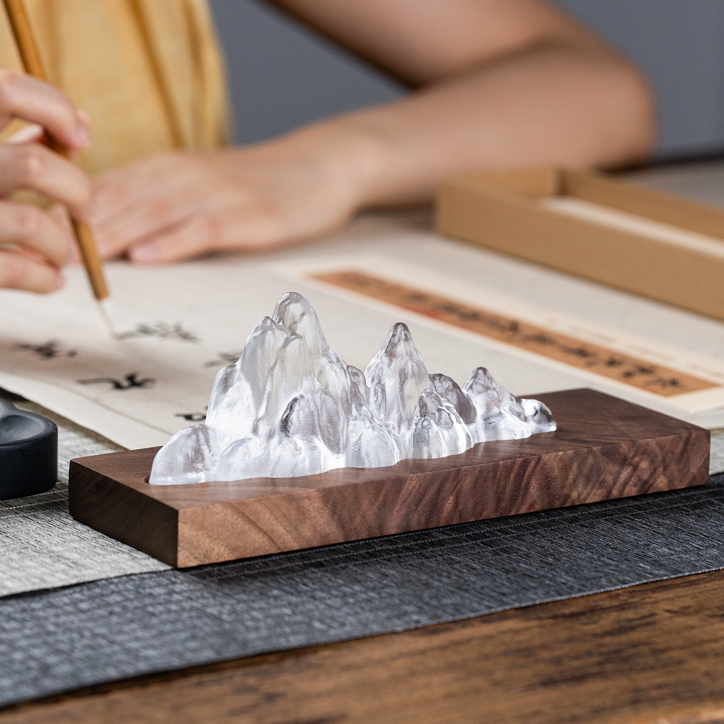 📚 古法琉璃笔搁文房四宝多功能笔山创意高档书法毛笔架托笔架支架专用黑胡桃木中式女生礼物书桌桌面实木摆件