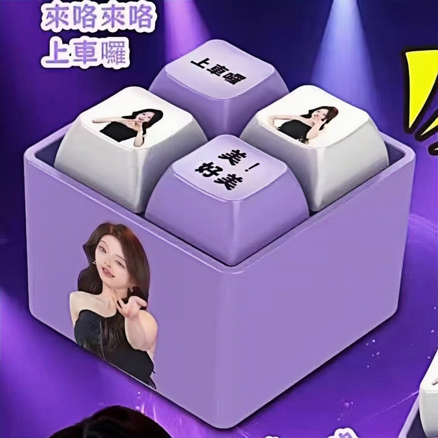 📚 创意四宫格网红来喽来喽上车舞按键发声钥匙扣解压玩具办公室挂件