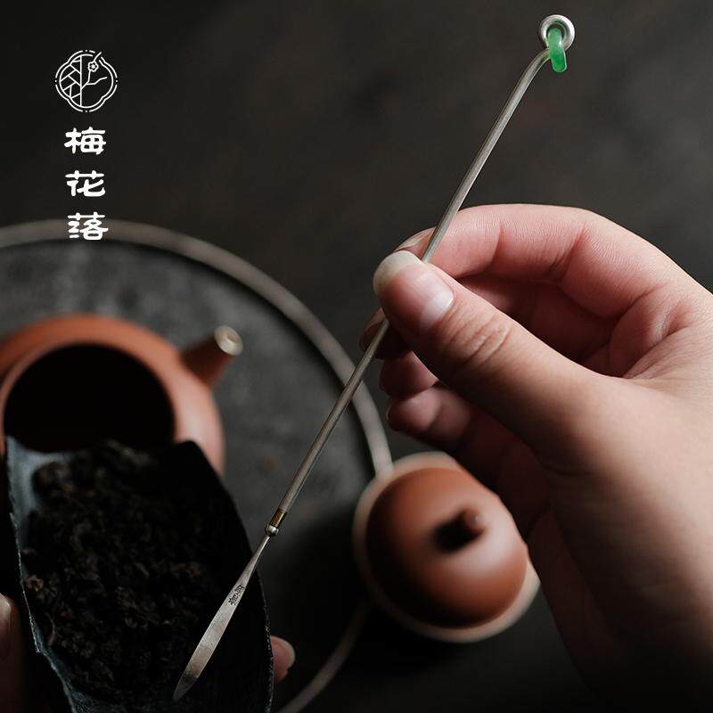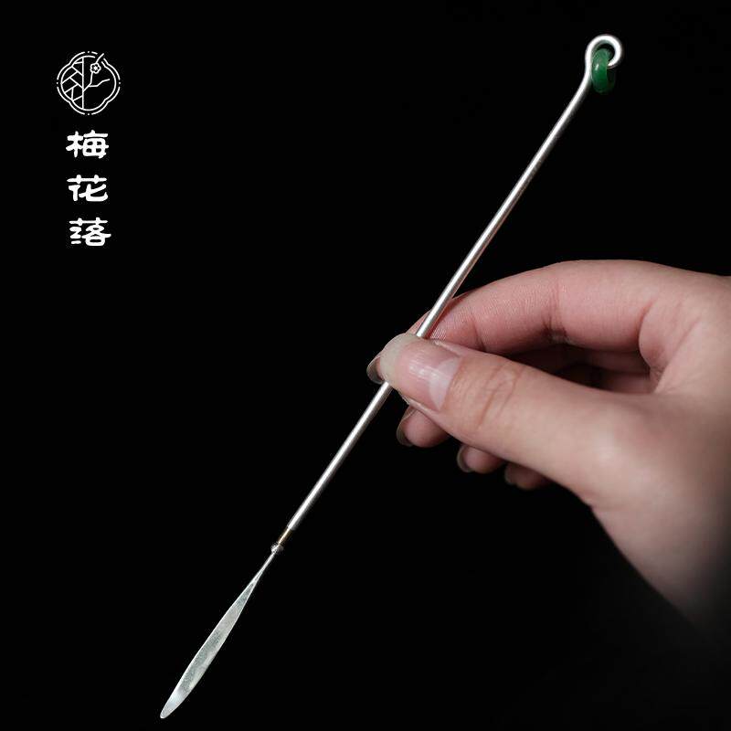 📚 梅花落玉环茶针999足银茶拨茶扒茶匙茶道配件纯银手工捶打清物堂