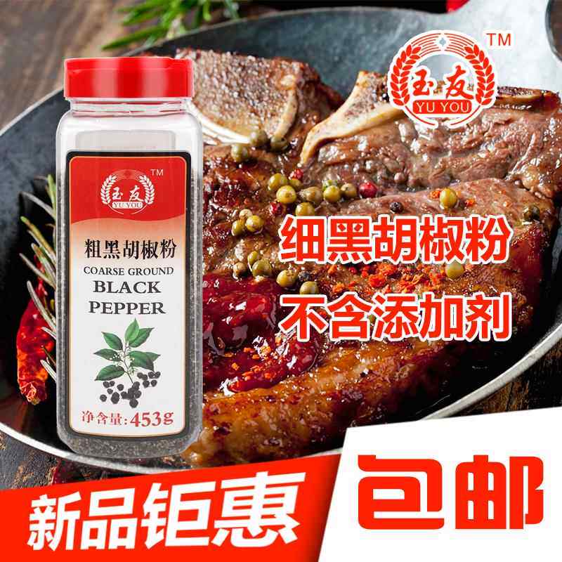 📚 玉友粗黑胡椒粉453g黑胡椒碎披萨烘焙烤肉牛排配料包邮