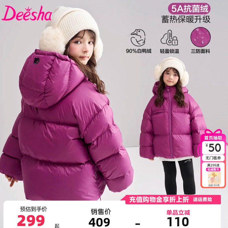 📚 笛莎千与童装女童羽绒服冬季新款儿童宝宝中童加厚短款外套面包服
