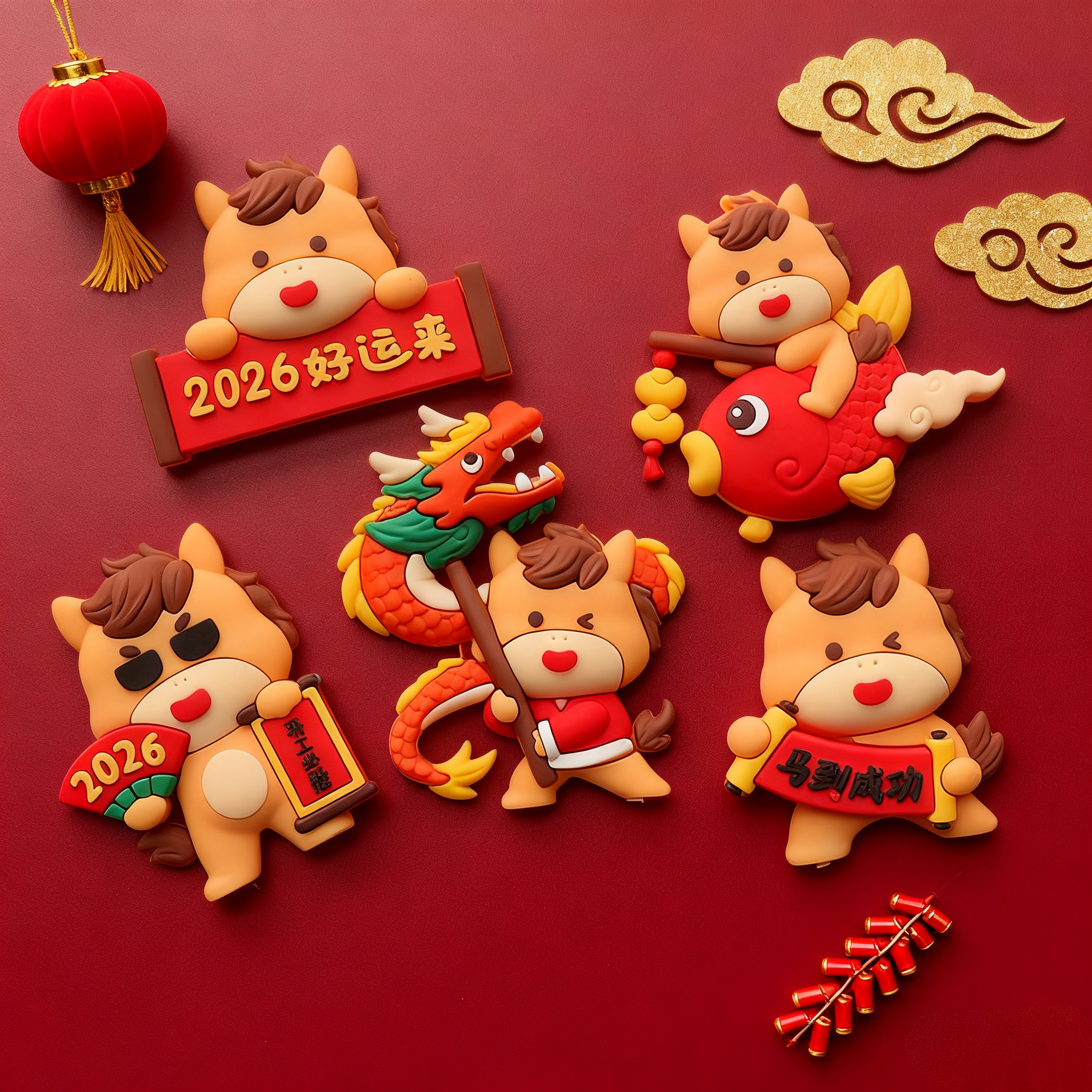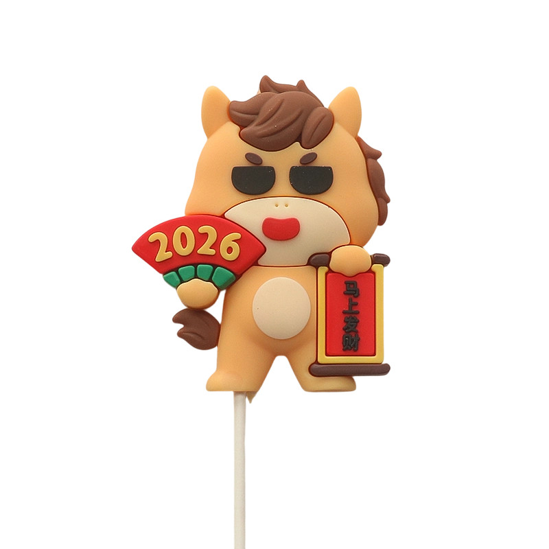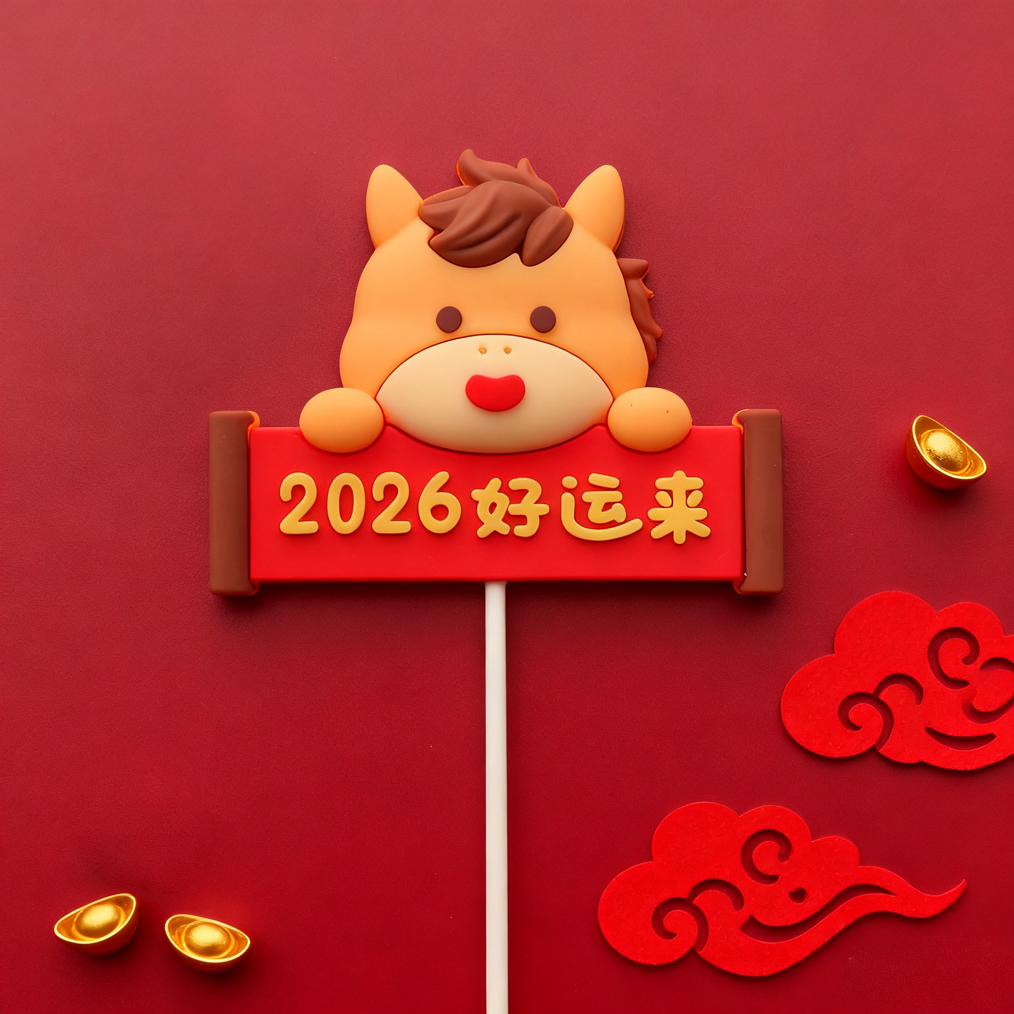 📚 2026软胶马年快乐好运来马到成功锦鲤小马新年元旦蛋糕装饰插件