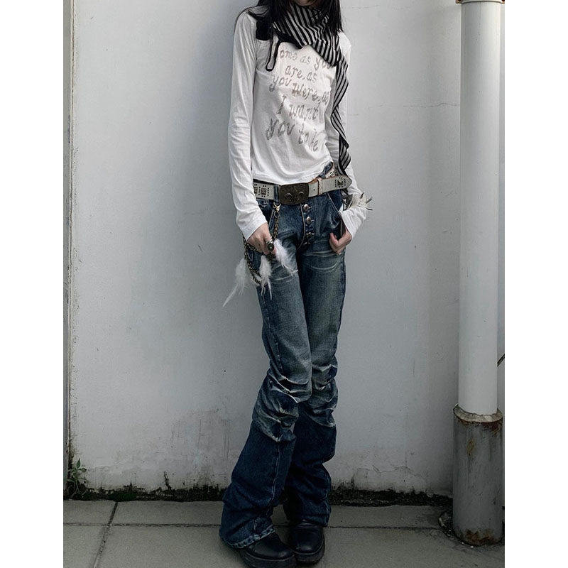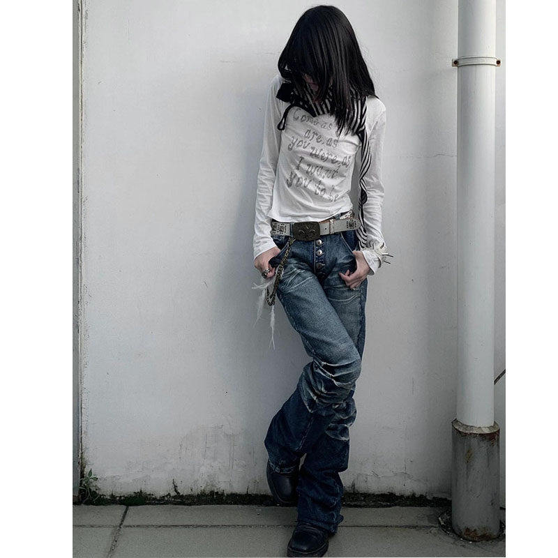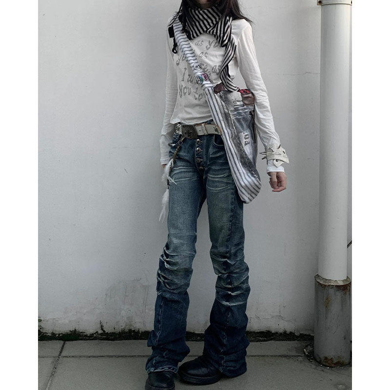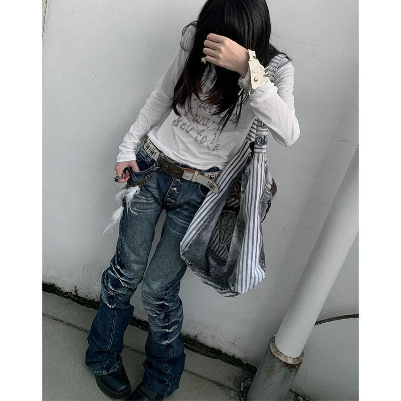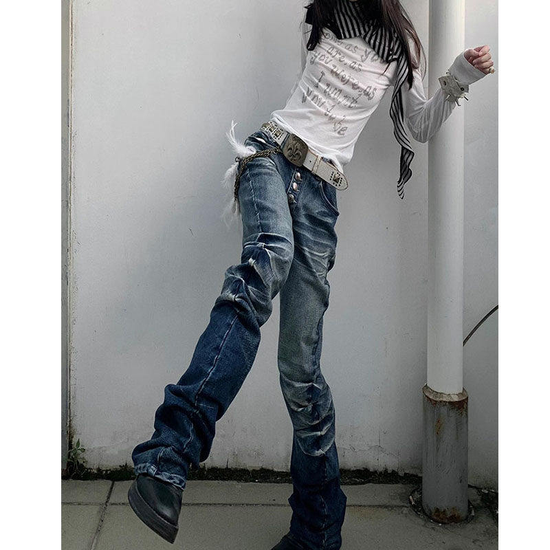 📚 设计感小众亚文化穿搭y2k美式弯刀微喇叭女夏视觉系高腰显瘦裤子