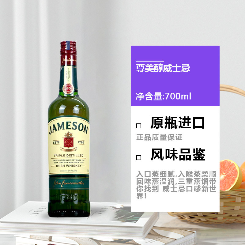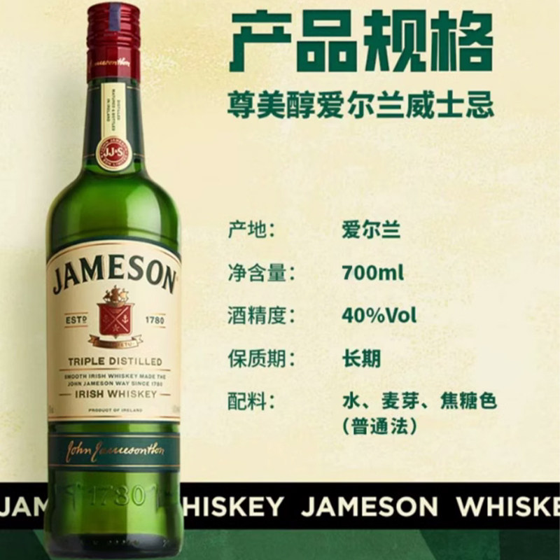 📚 【自营】Jameson尊美醇爱尔兰威士忌酒700ml进口烈酒占美神洋酒