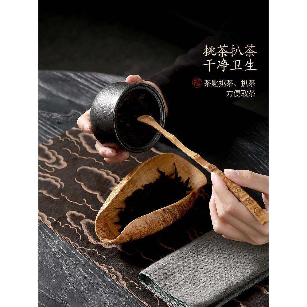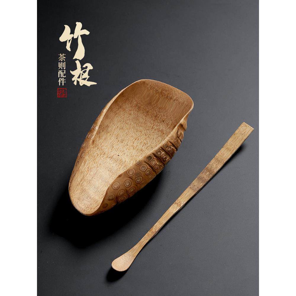 💥🍵惊艳!大岸堂老竹根茶则茶拔两件套手工竹茶扒,让茶道更精致💖