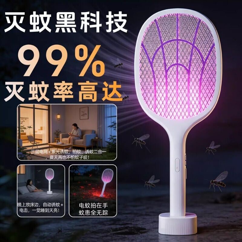 📚 电蚊拍充电式家用强力自动灭蚊拍折叠式二合一苍蝇蚊子电网拍神器